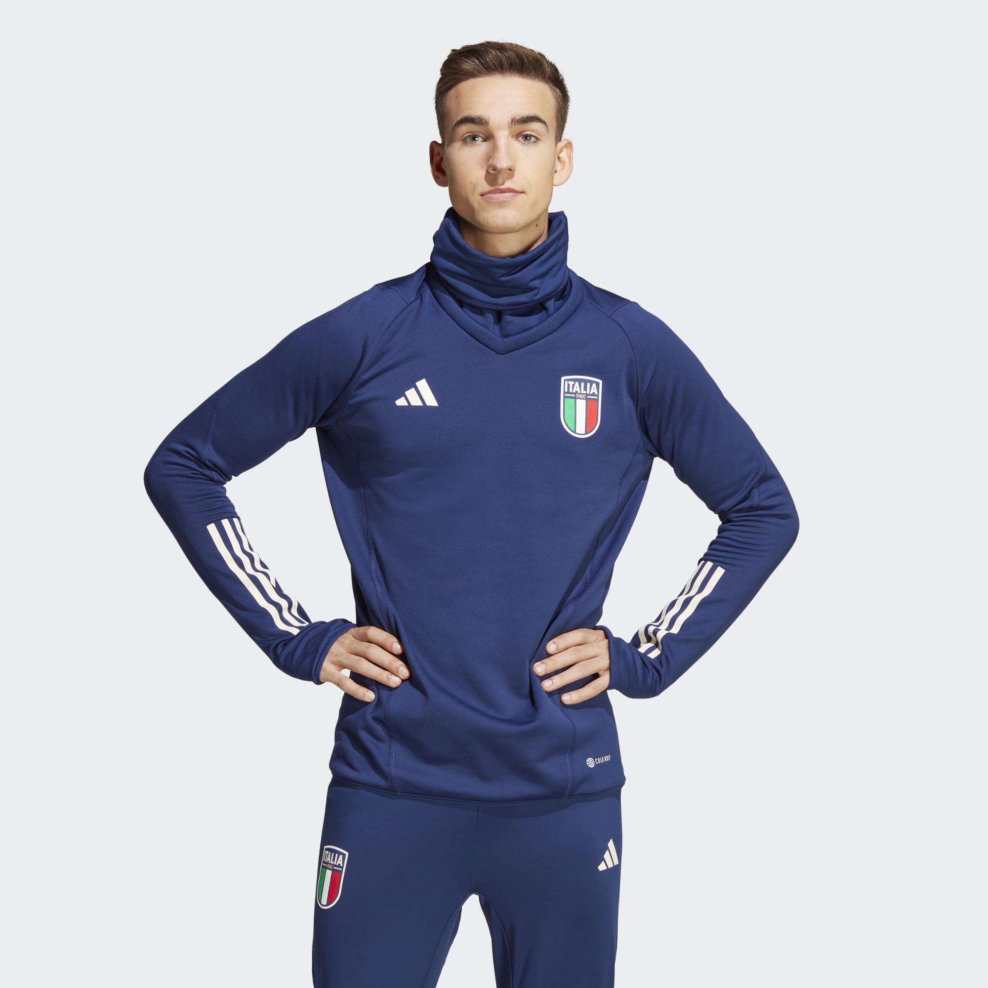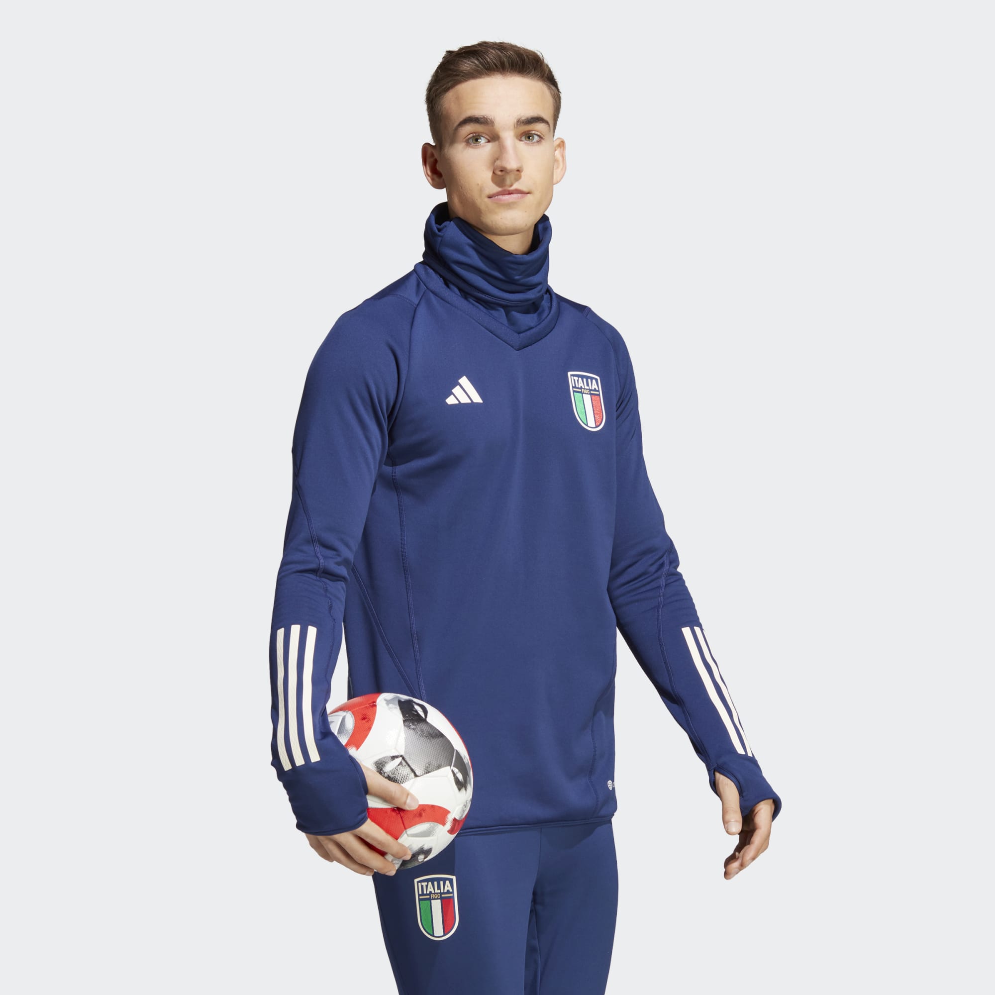 This adidas Italy Tiro 23 Pro Warm Top in Dark Blue helps the players give it their all during cold-weather training. The streamlined silhouette and insulating COLD.RDY keep you agile, warm and comfortable through every drill.