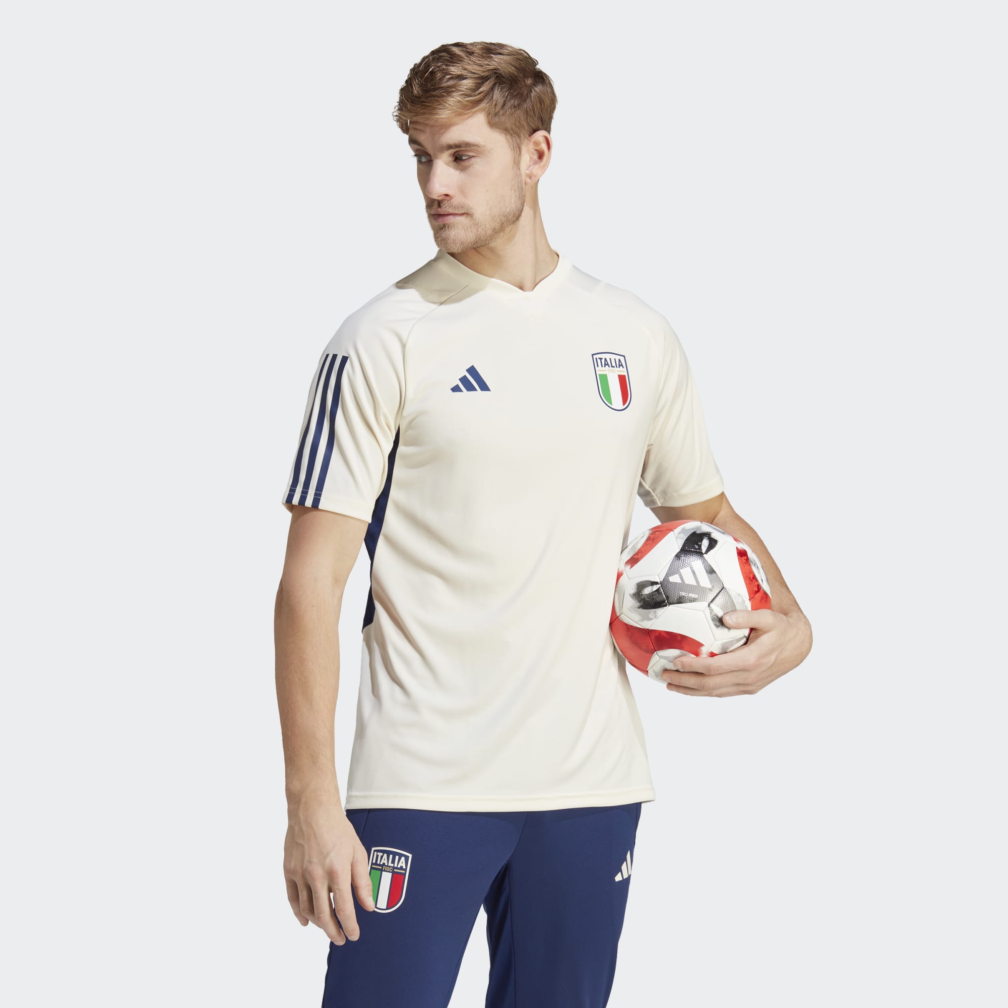 Part of Italy's adidas Tiro 23 training range, this football jersey in Cream White supports all-action play with a slim fit, moisture-absorbing AEROREADY and breathable mesh panels.