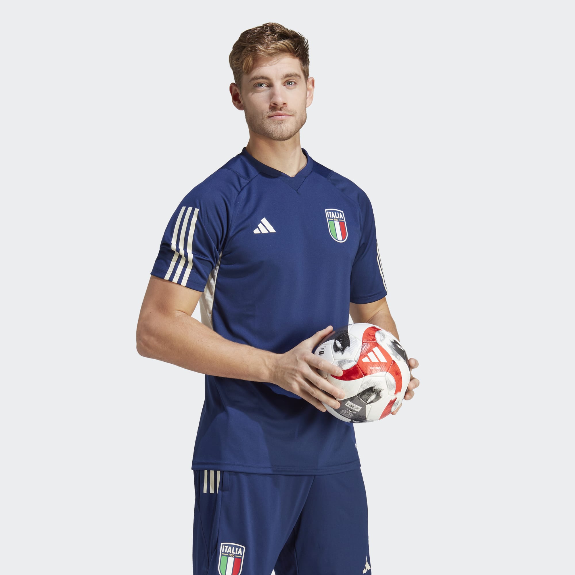 Part of Italy's adidas Tiro 23 training range, this football jersey supports all-action play with a slim fit, moisture-absorbing AEROREADY and breathable mesh panels.