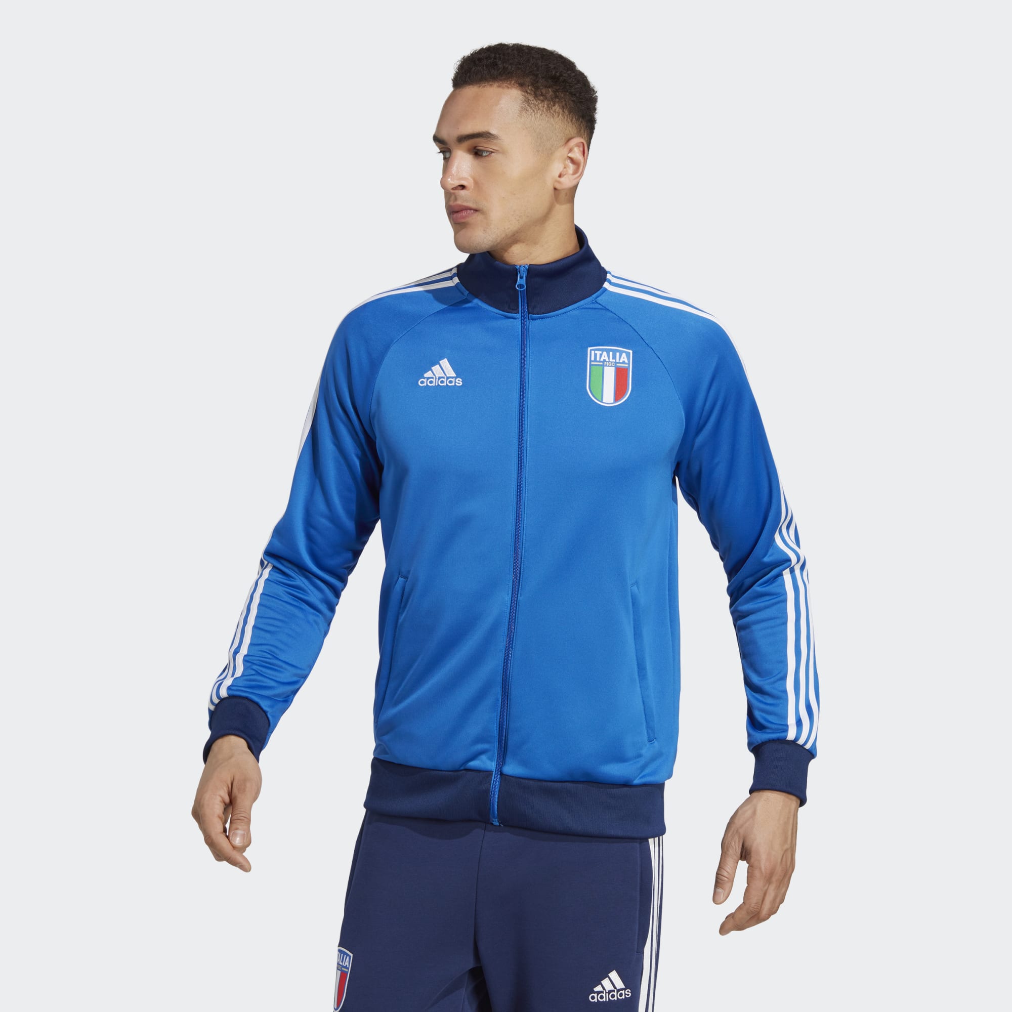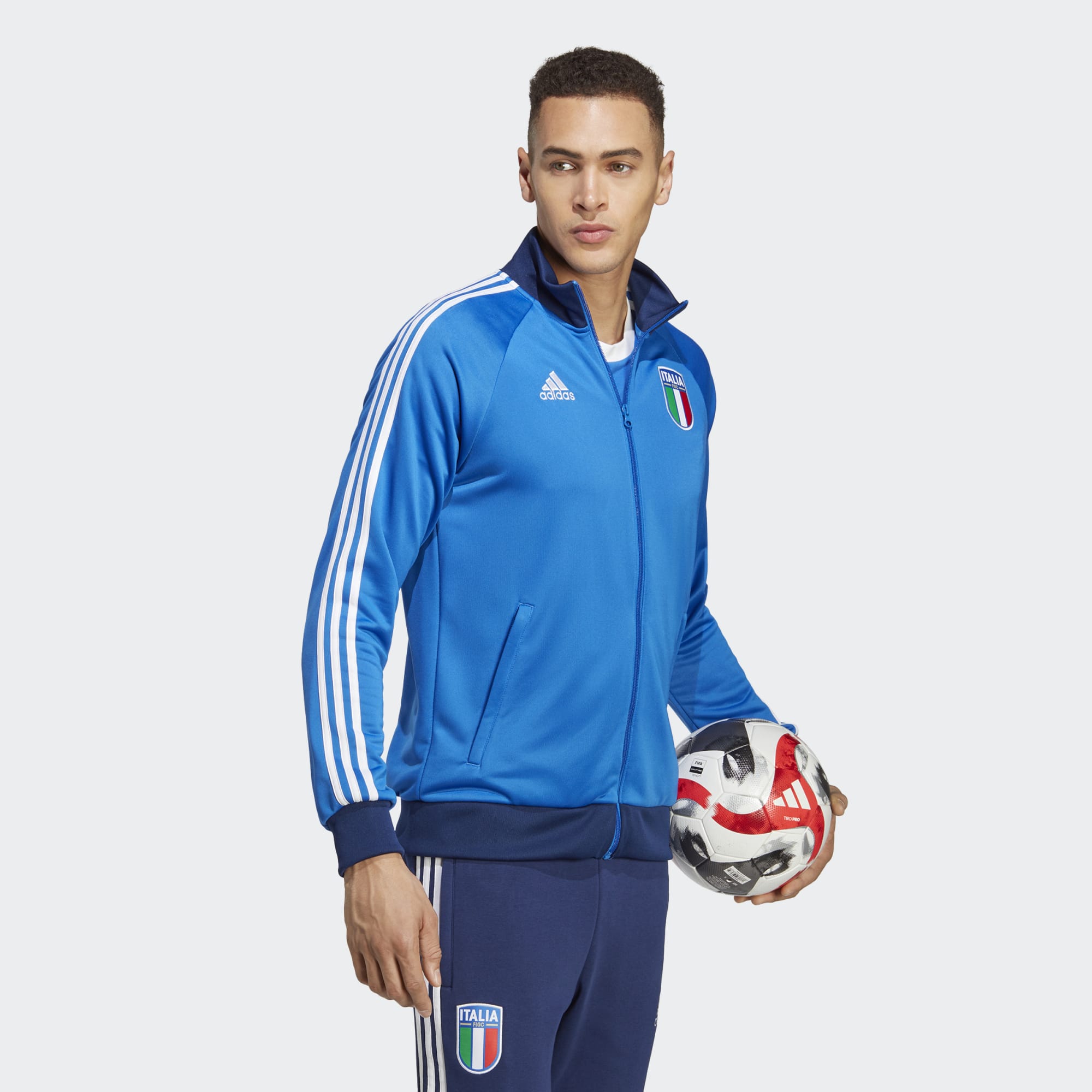 Show you're a true Azzurri by zipping up this adidas Italy track top. Standing out over those famous blue colours, a woven team badge leaves no doubts about your football loyalties.