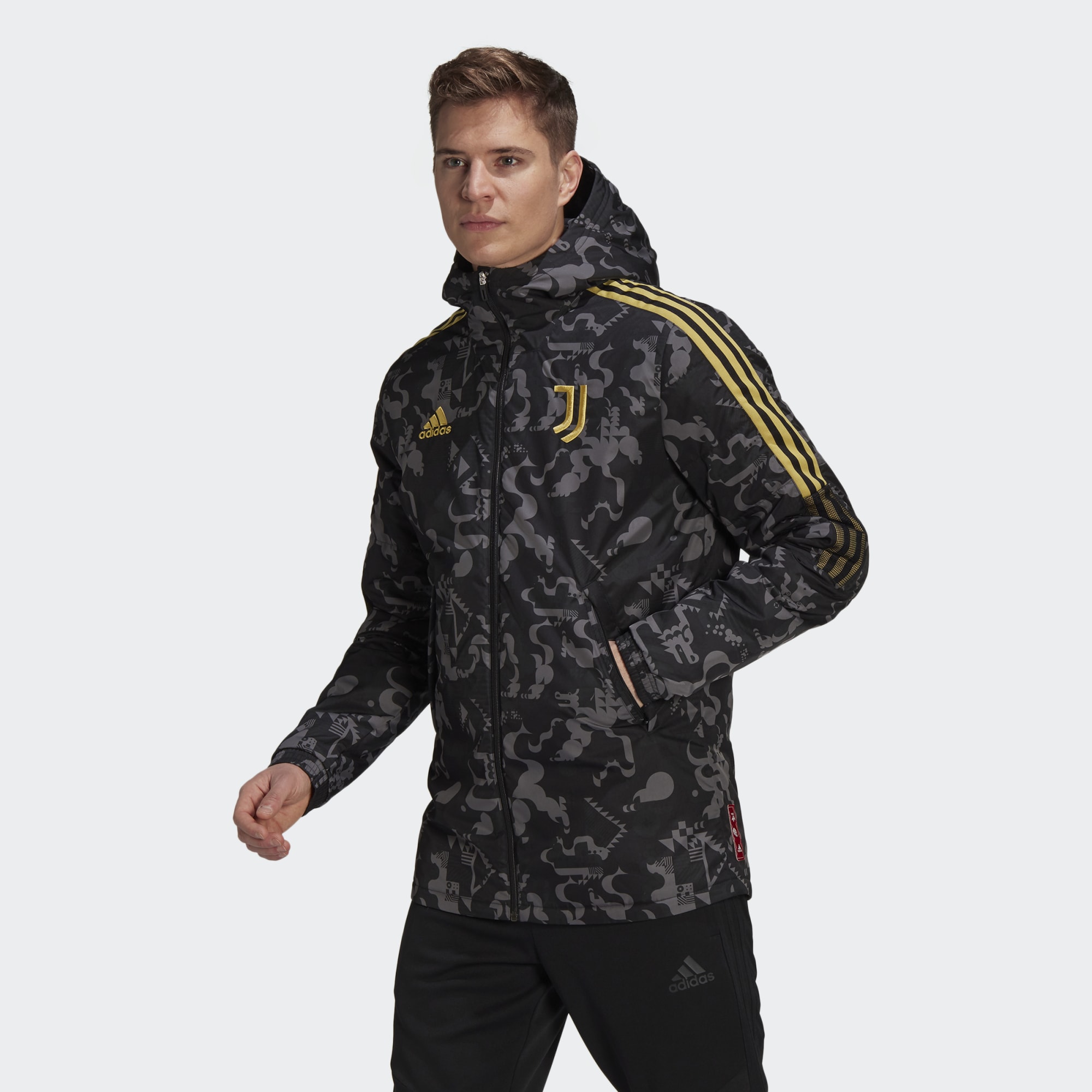 This adidas Juventus jacket celebrates the Chinese New Year with an eye-catching design on its hard-wearing fabric. In Chinese mythology, the pairing of qilin and flag graphics represents determination and leadership.