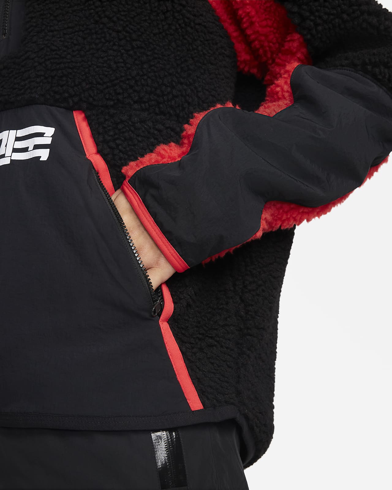 Crafted with water-repellent nylon panels and lightweight fleece that's been brushed on both sides for an all-round fluffy feel, this roomy layer is all about helping you rep the national team in warm comfort.