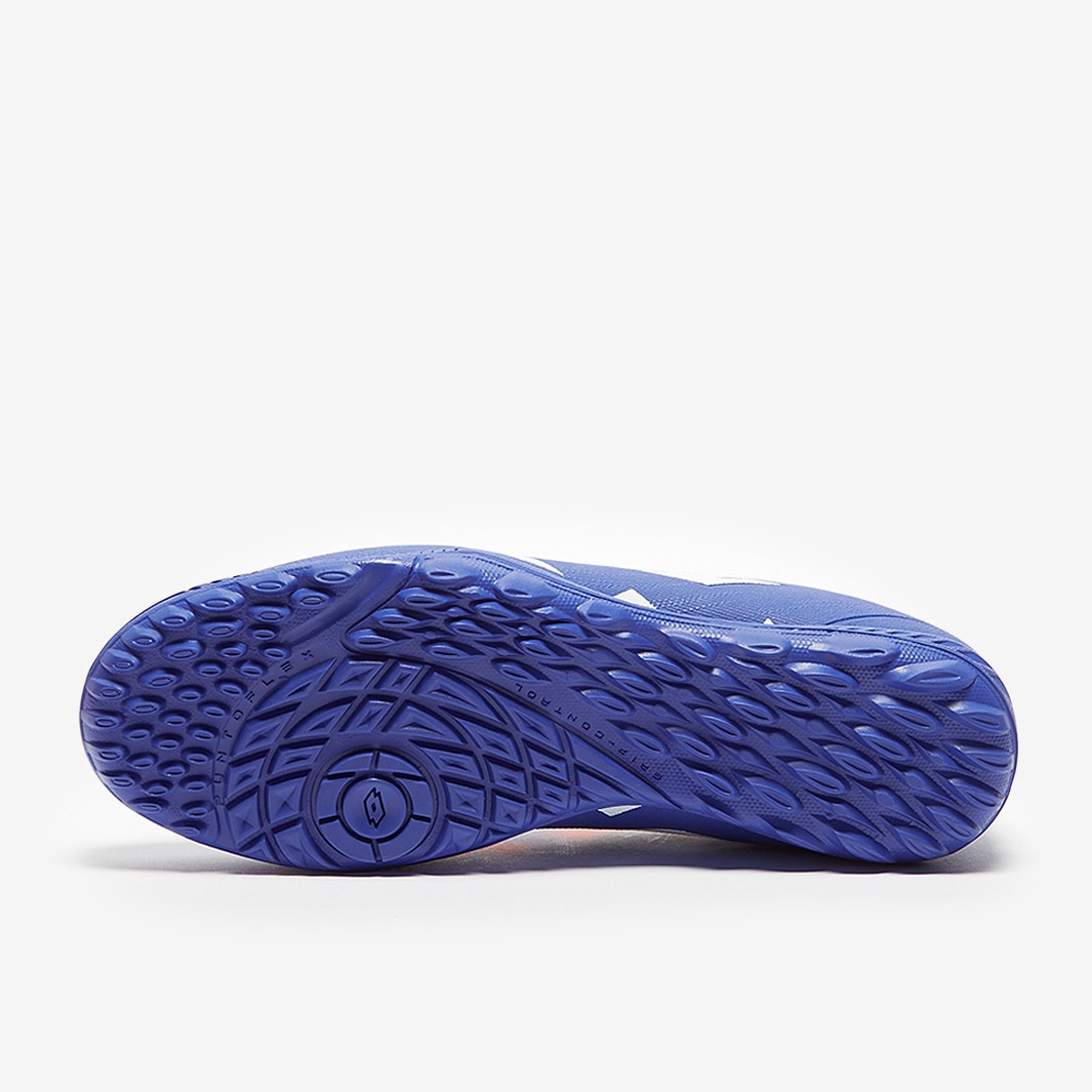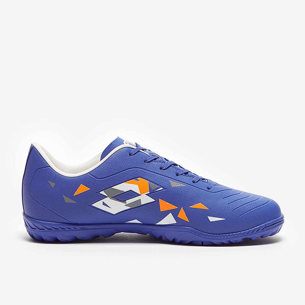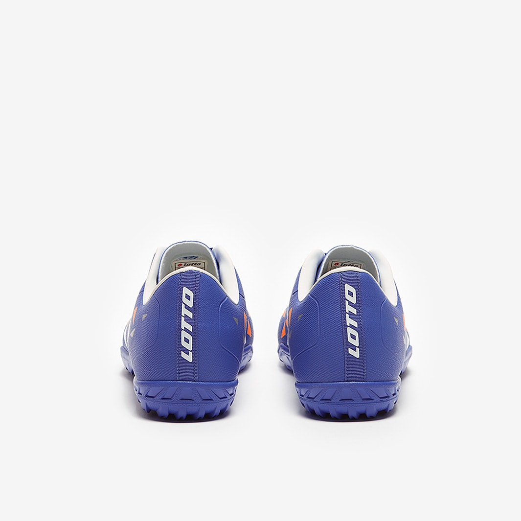 Lead the next generation of speed wearing Lotto Solista 700 V TF turf football shoes in Amparo Blue/All White/Orange Beat, designed to make the fastest players even faster.