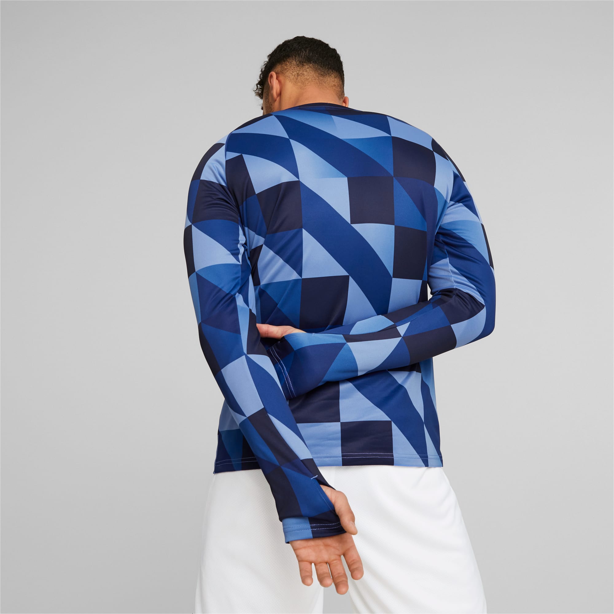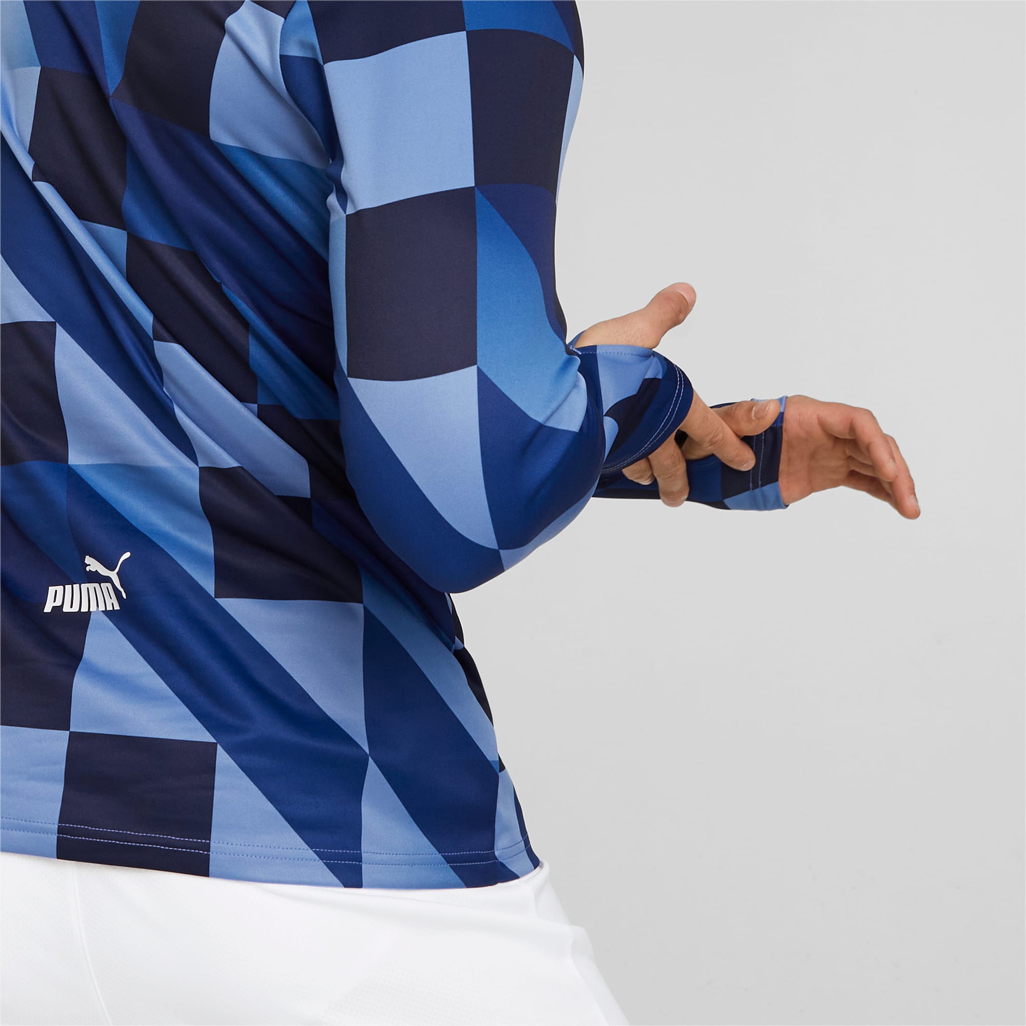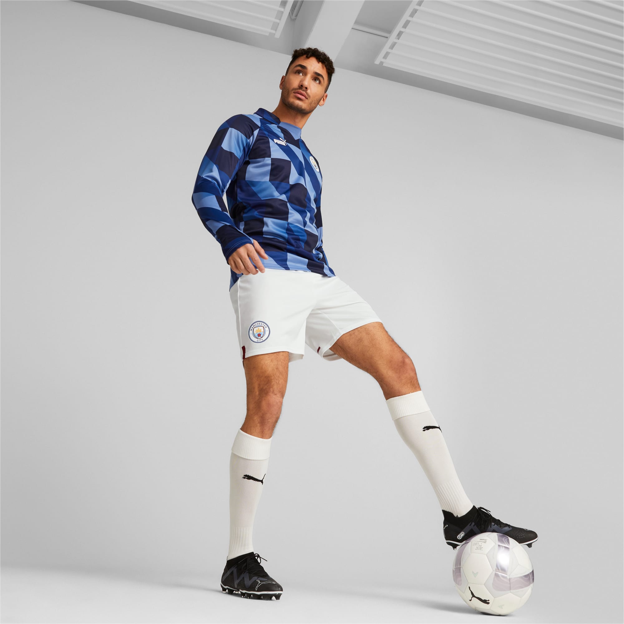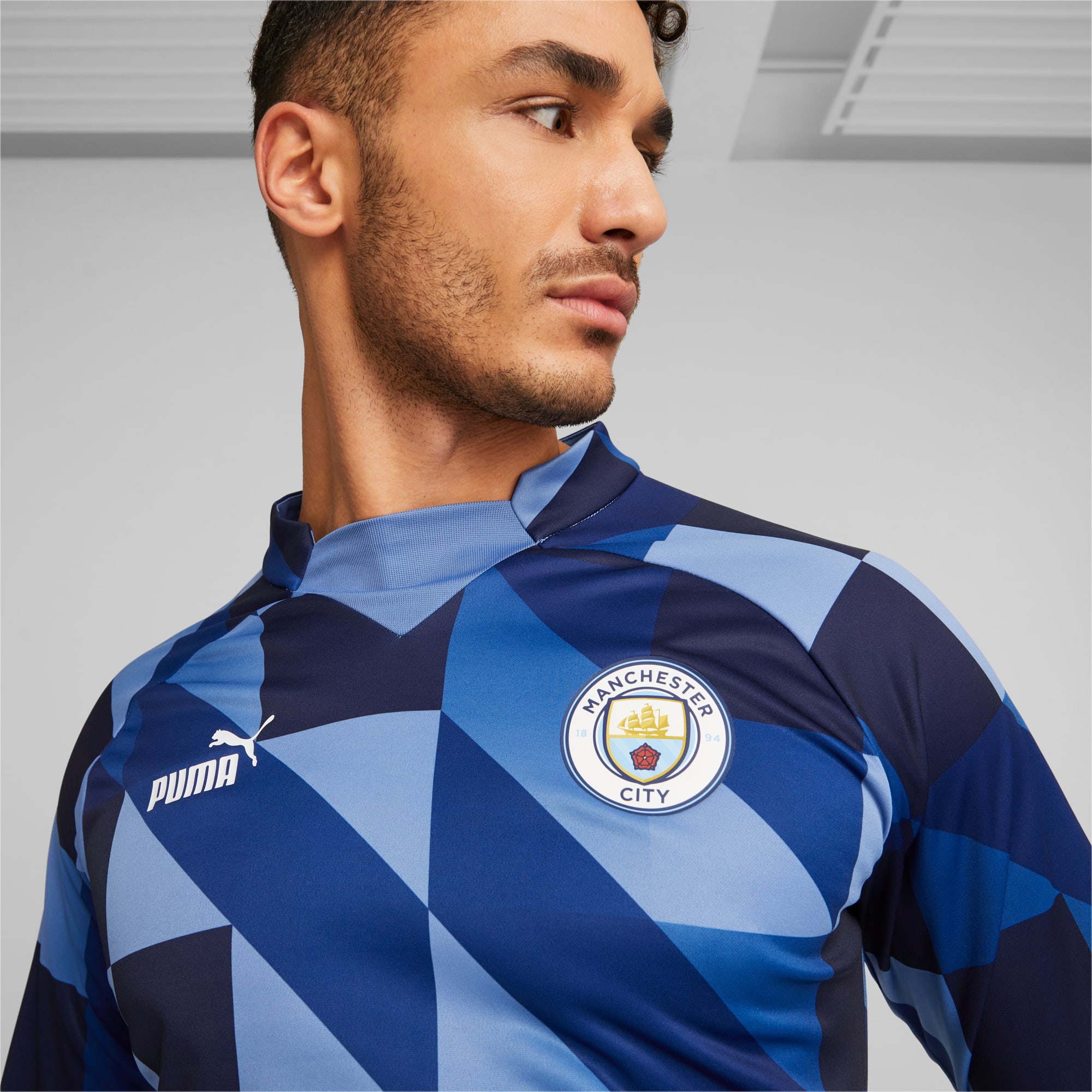 Show you're a Cityzen in this Manchester City F.C. Prematch Sweatshirt in Lake Blue / Puma Navy with a vibrant all-over print and a slim fit. Performance technology designed to wick moisture from the body and keep you free of sweat during exercise