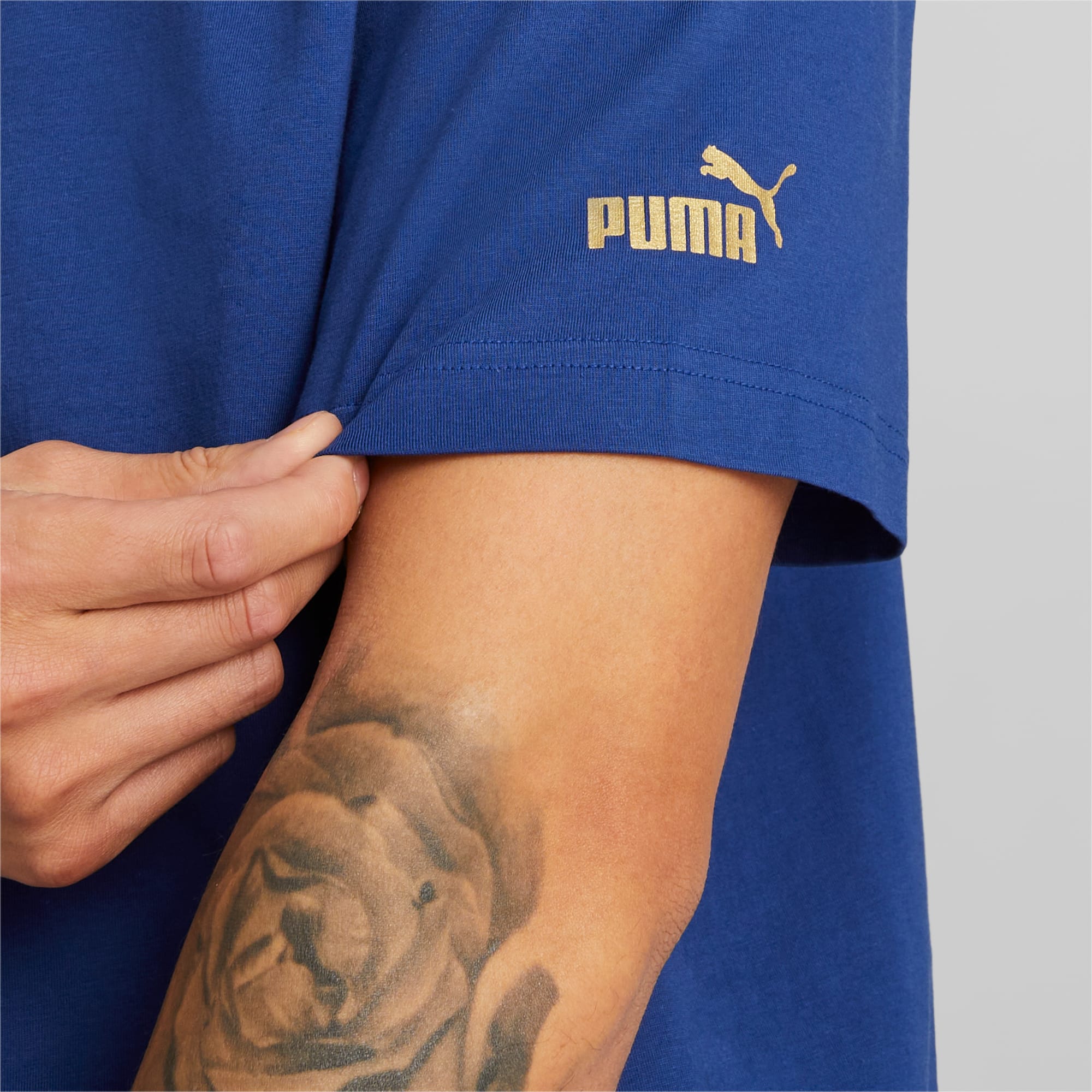 The tee is designed by PUMA, it is prominently featured with PUMA Wordmark on the left sleeve, Manchester City logo on the front.