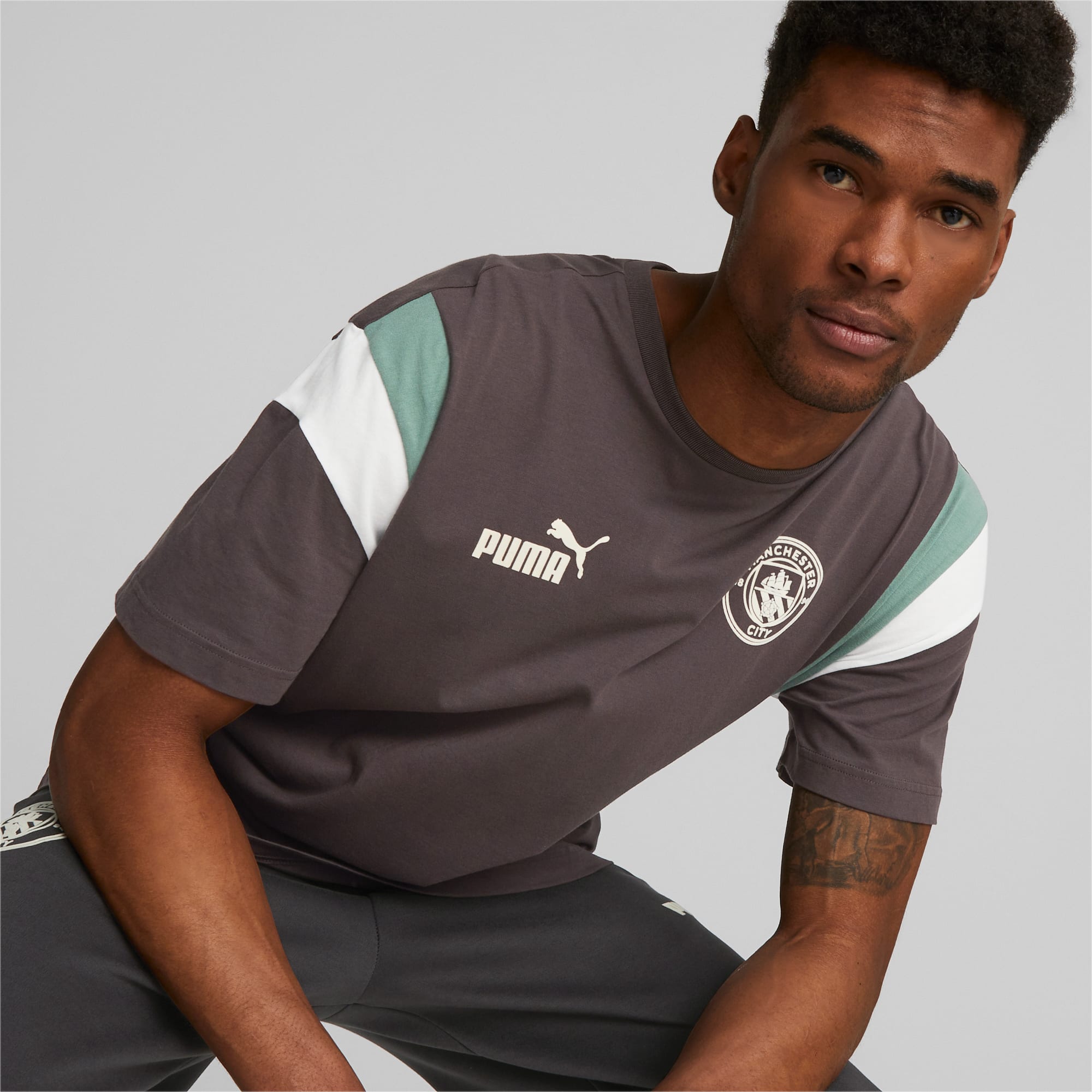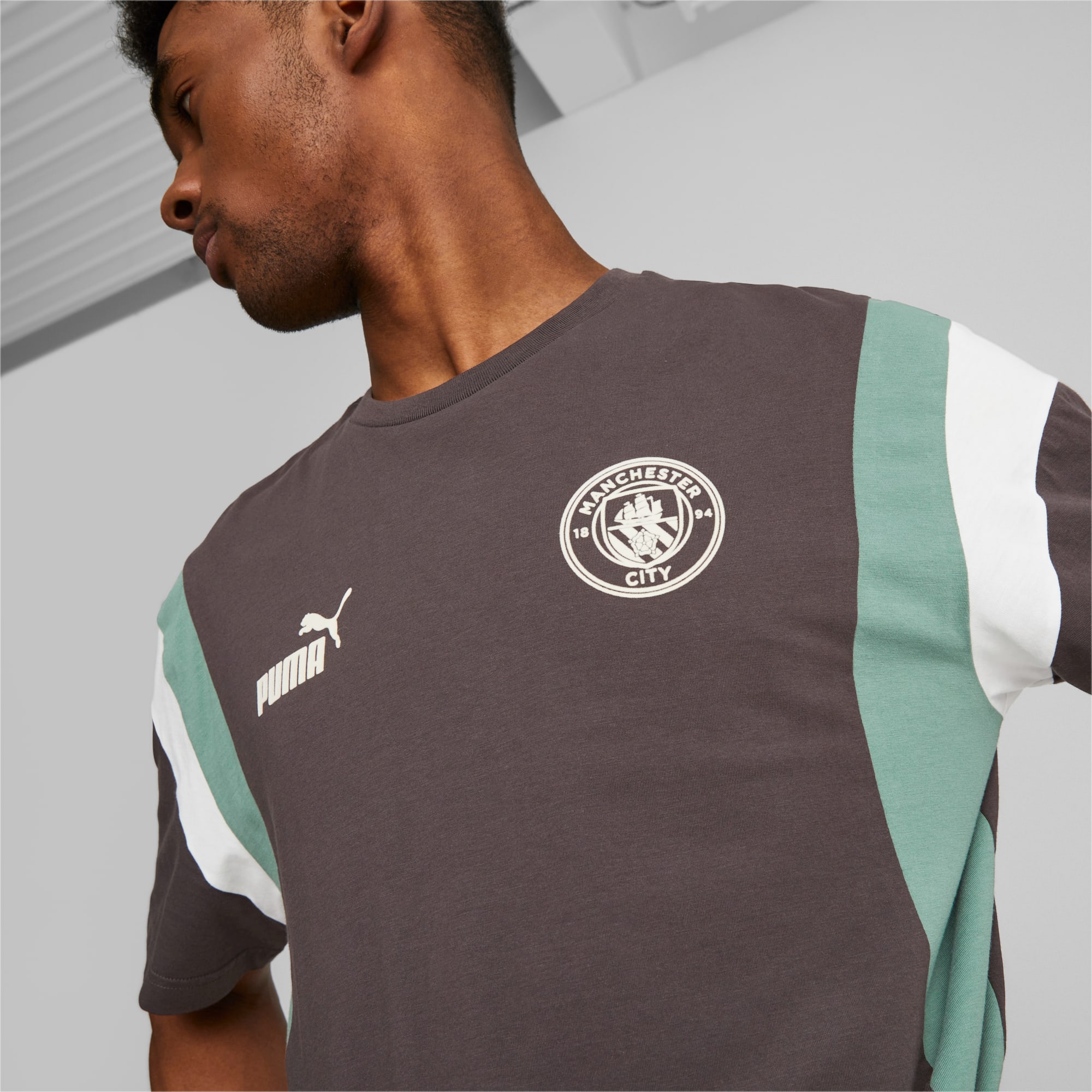 Introducing the recently released Puma Manchester City FtblArchive Tee in Flat Dark Gray/Deep Forest, designed to pay tribute to the rich history and traditions of the club.