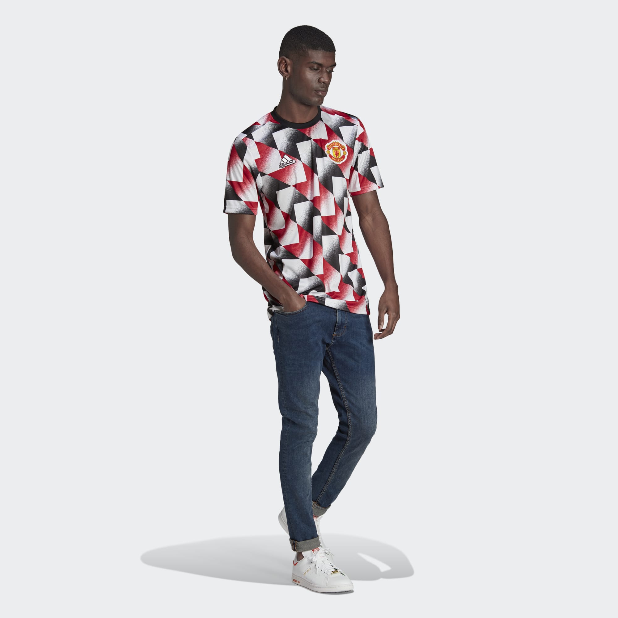 A collision of club colours and a classic adidas design. Starring on the pitch before kickoff, this football jersey helps Manchester United players prepare for games.
