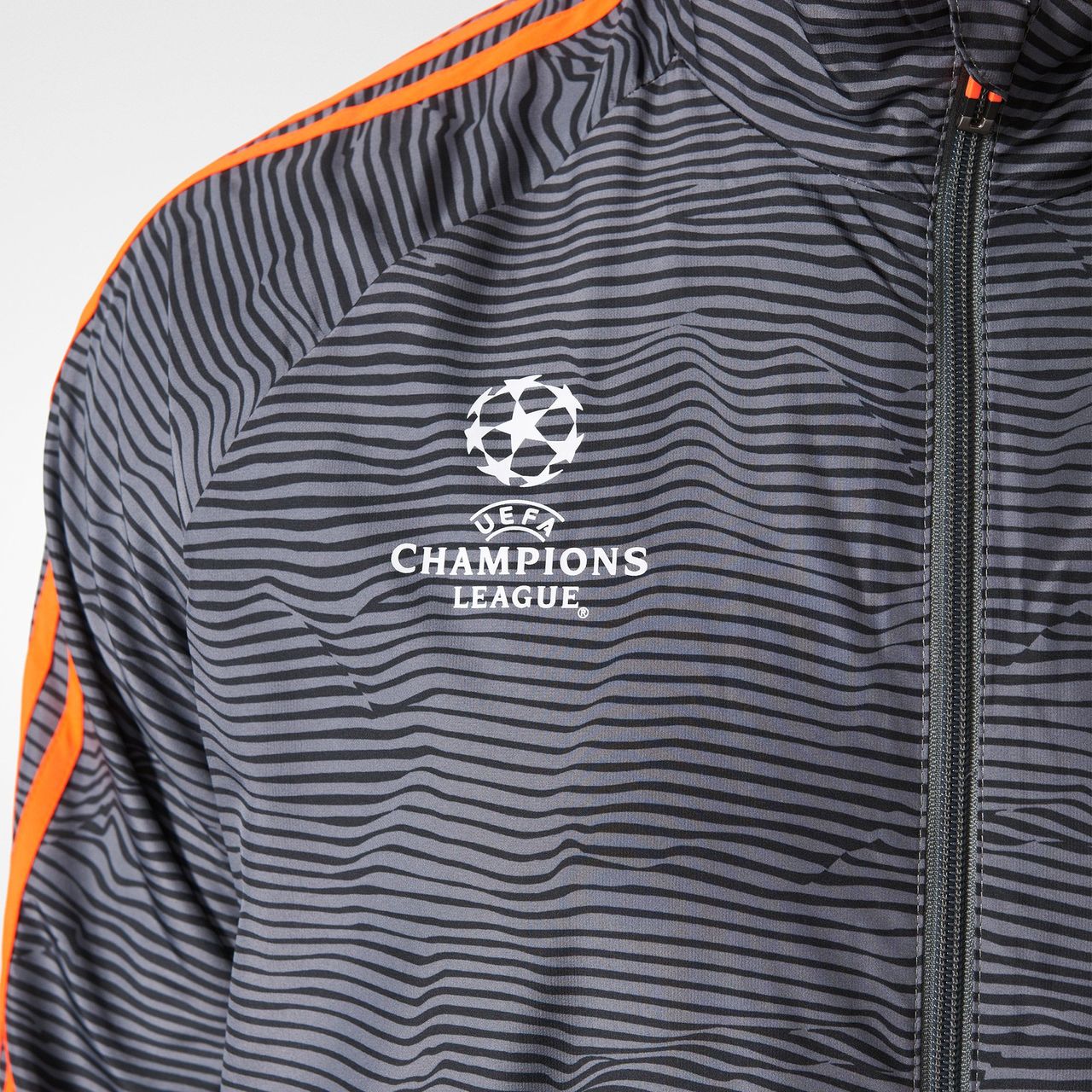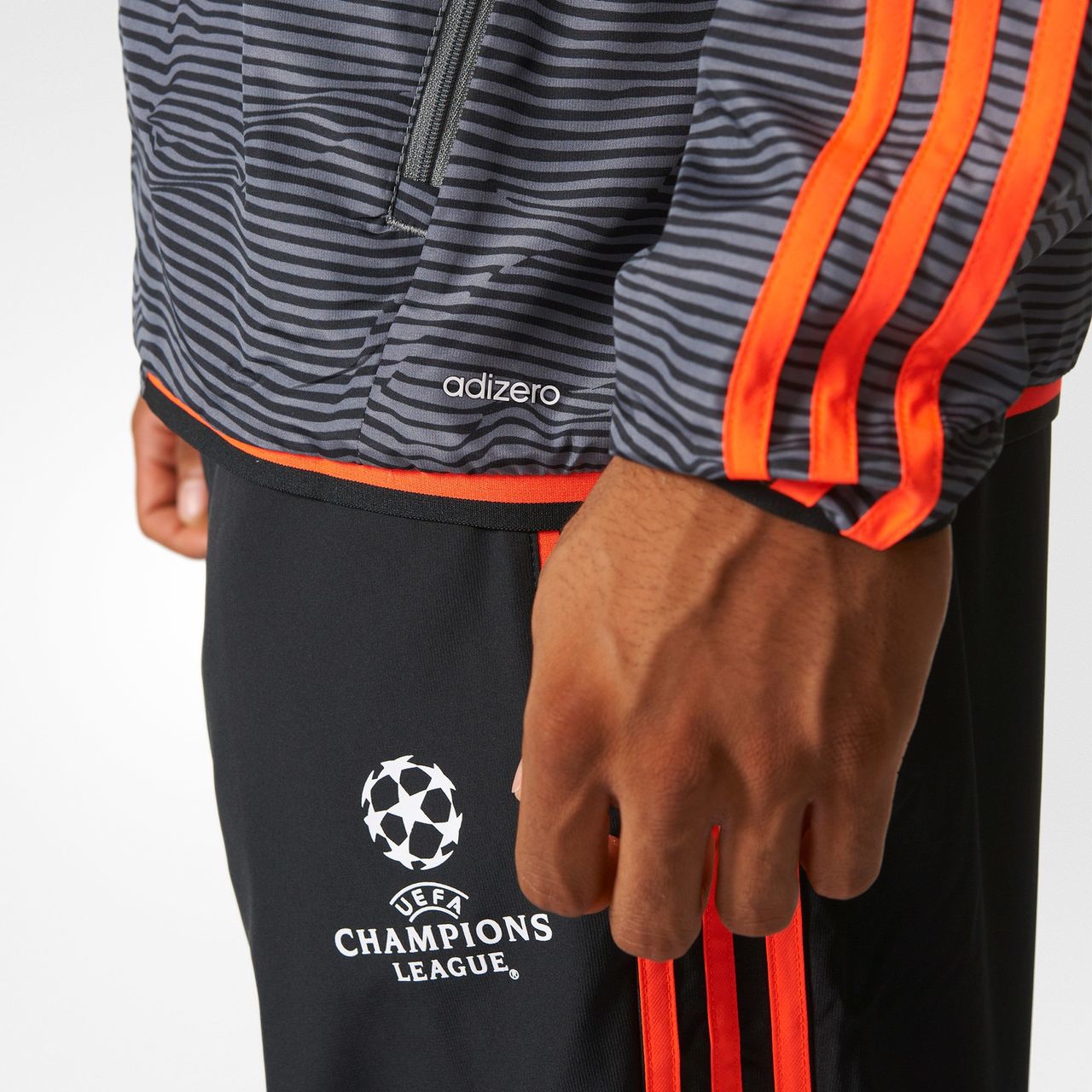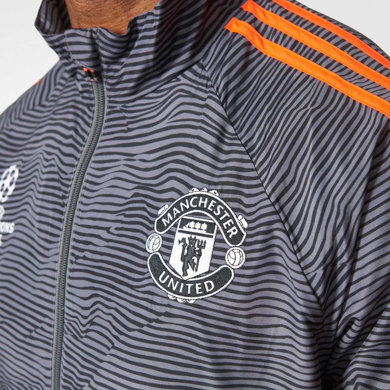 You can cheer on the Red Devils in this Manchester United FC UCL Presentation Suit. Made of sweat-wicking climalite fabric to keep you dry and comfortable. Showing off the team badge on the chest, the jacket packs away for easy carrying. The pants feature a team badge at the hip and are finished with convenient ankle zips.