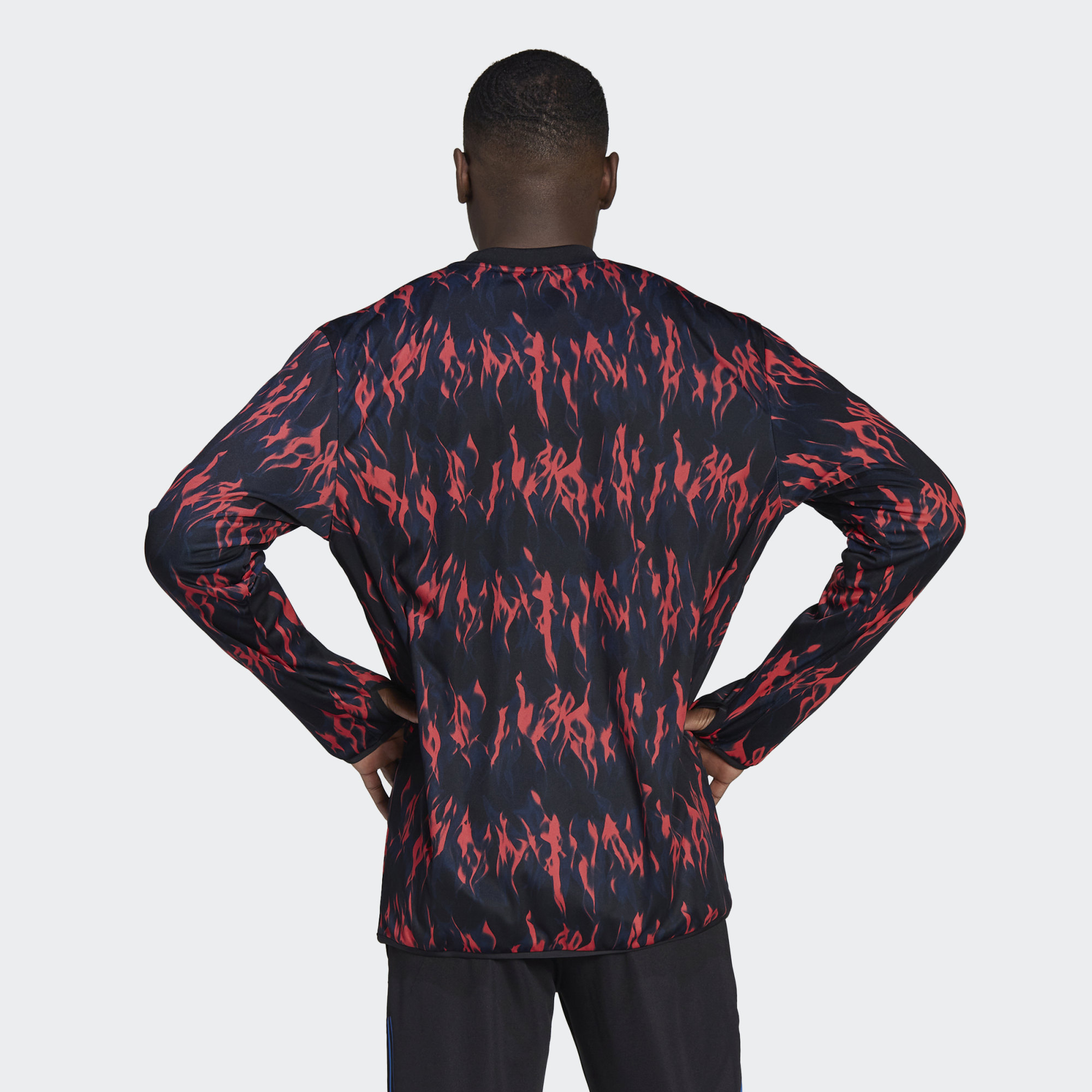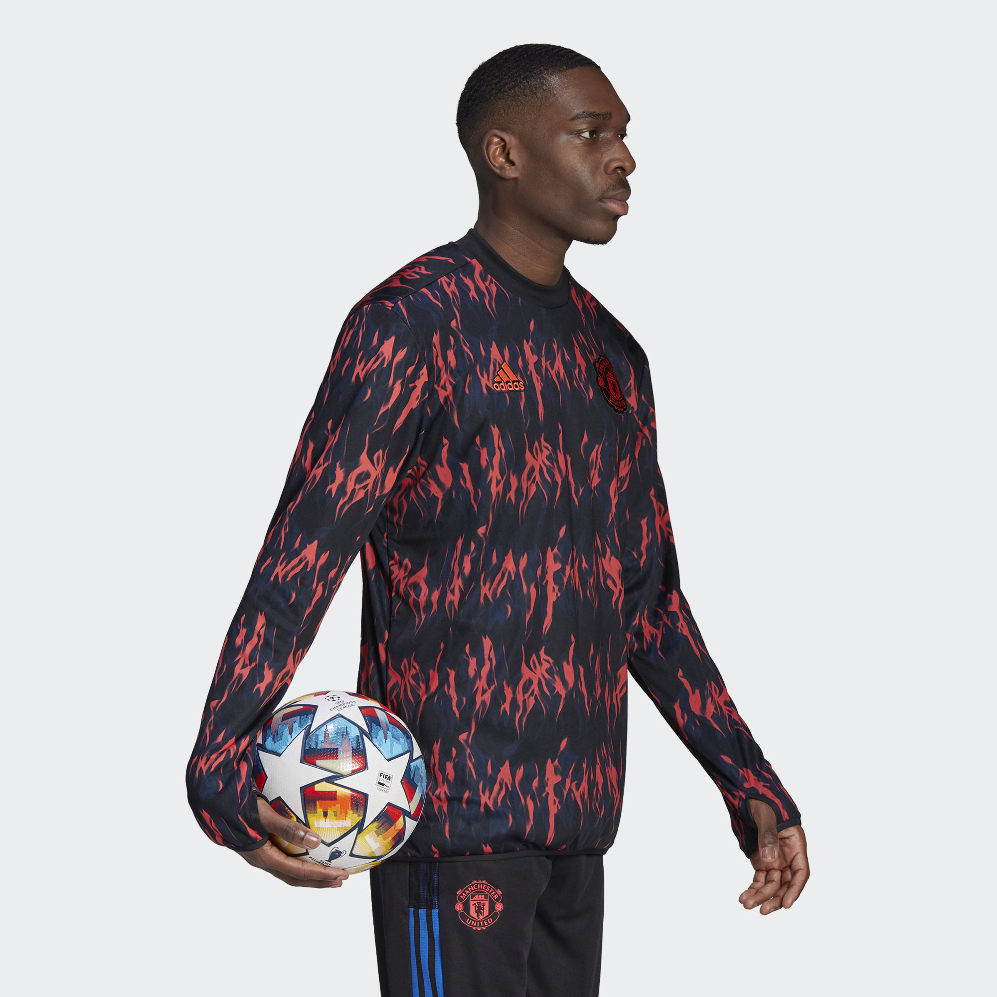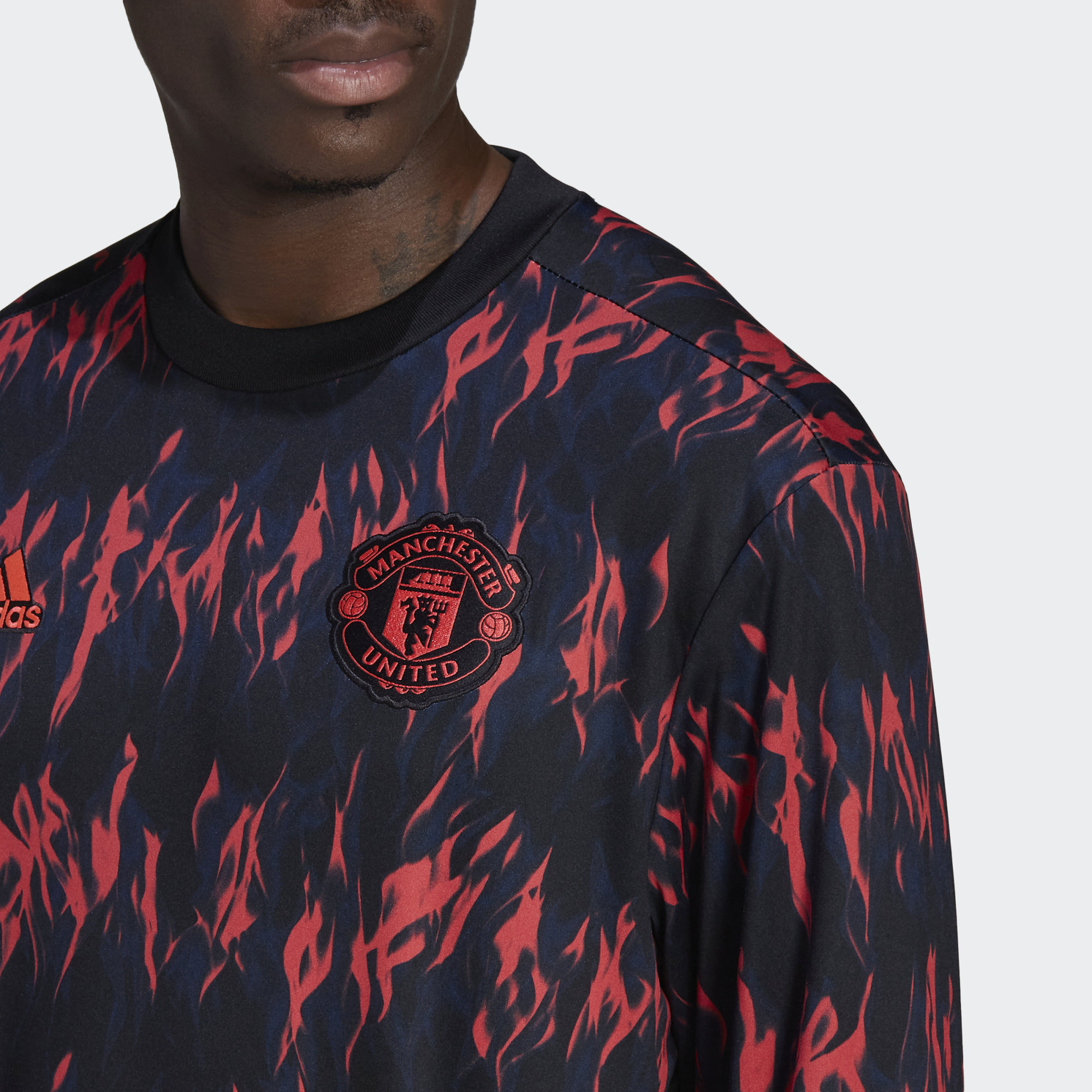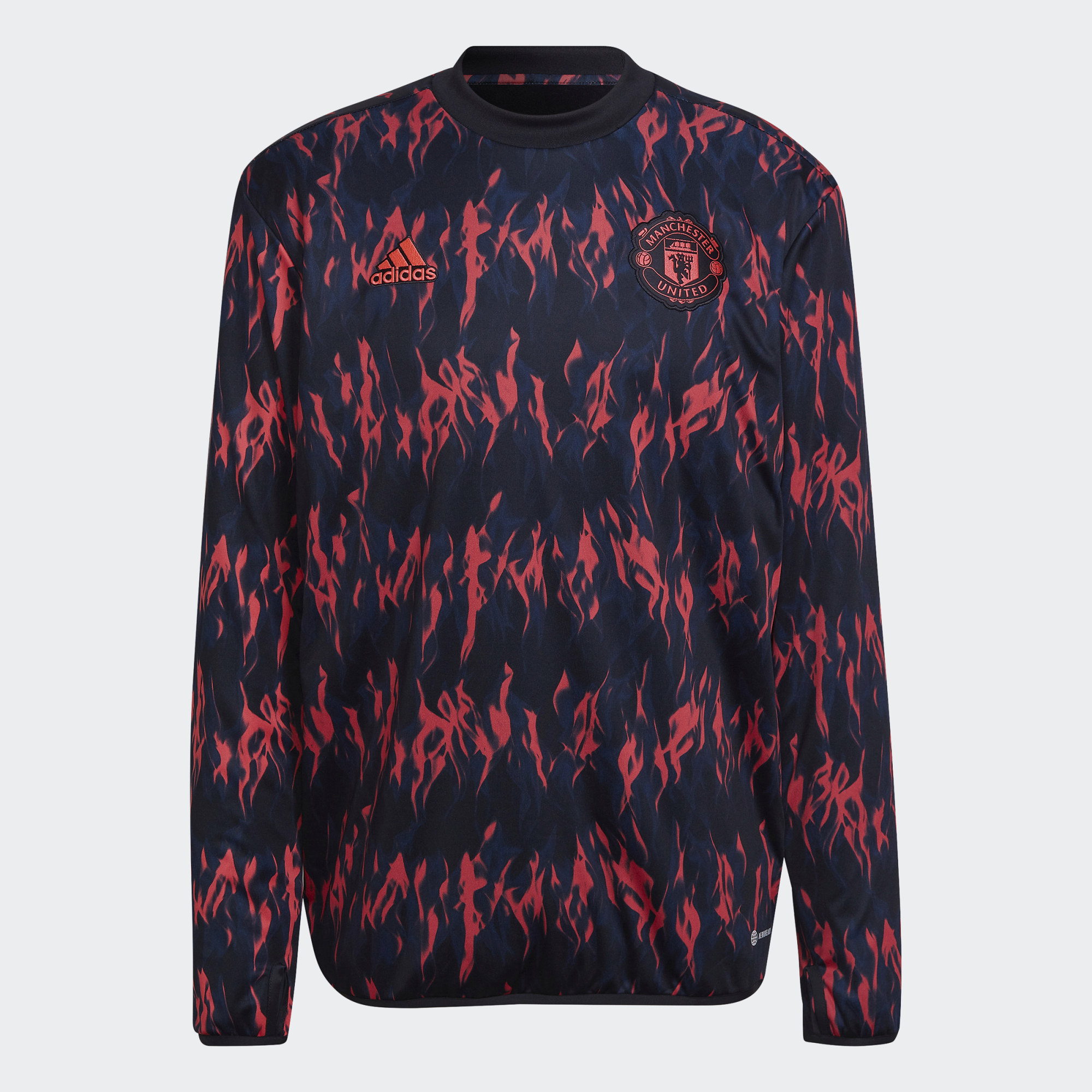 True to the club's world-famous nickname, this adidas Manchester United Pre-Match Warm Top turns up the heat with a flame-inspired graphic.