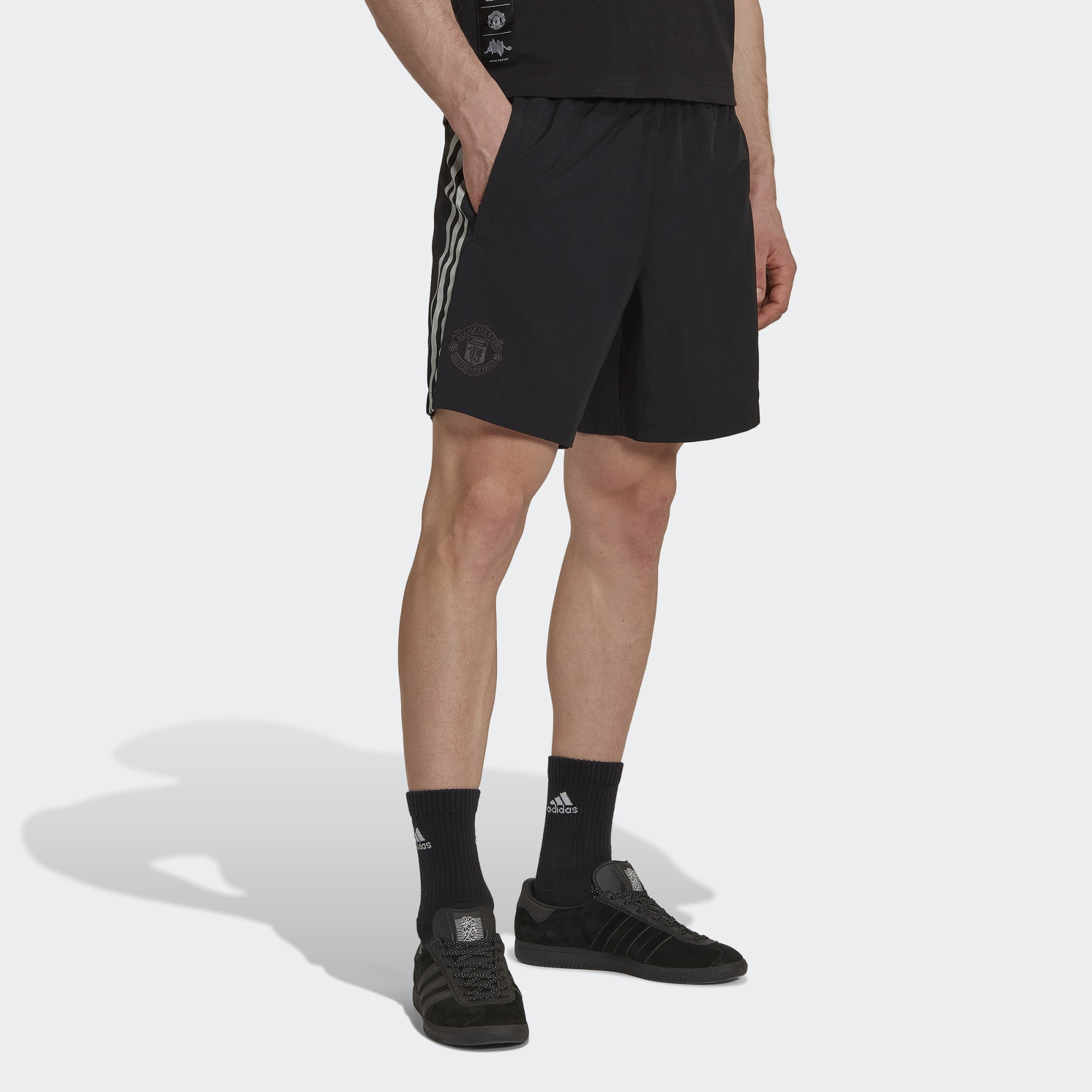 Showing off an eye-catching graphic down one leg, these adidas Manchester United football shorts are part of a collaboration with world-famous graphic designer Peter Saville CBE.