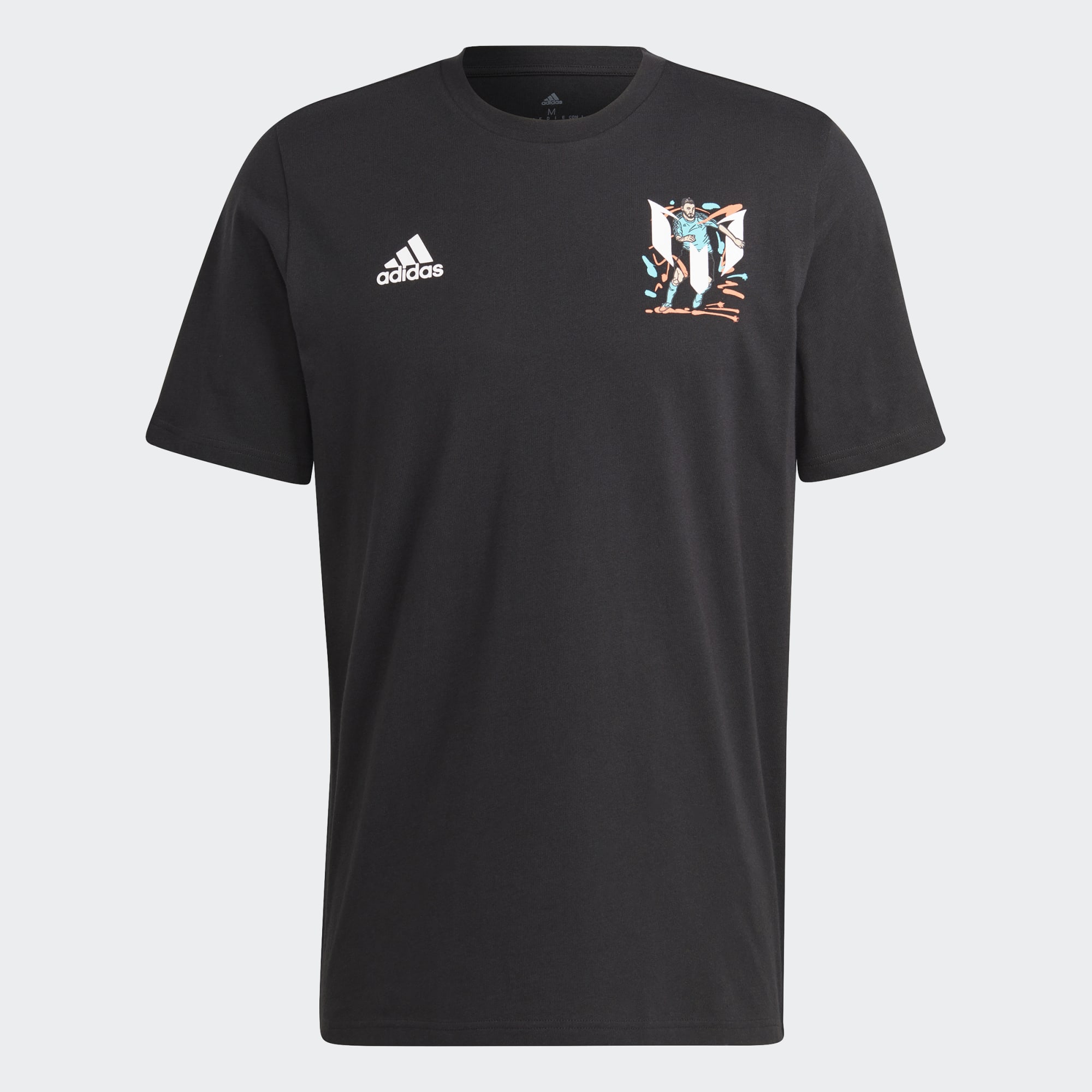 This Messi Football Icon Graphic T-Shirt in Black is an alternative option, made from comfortable all-cotton material.