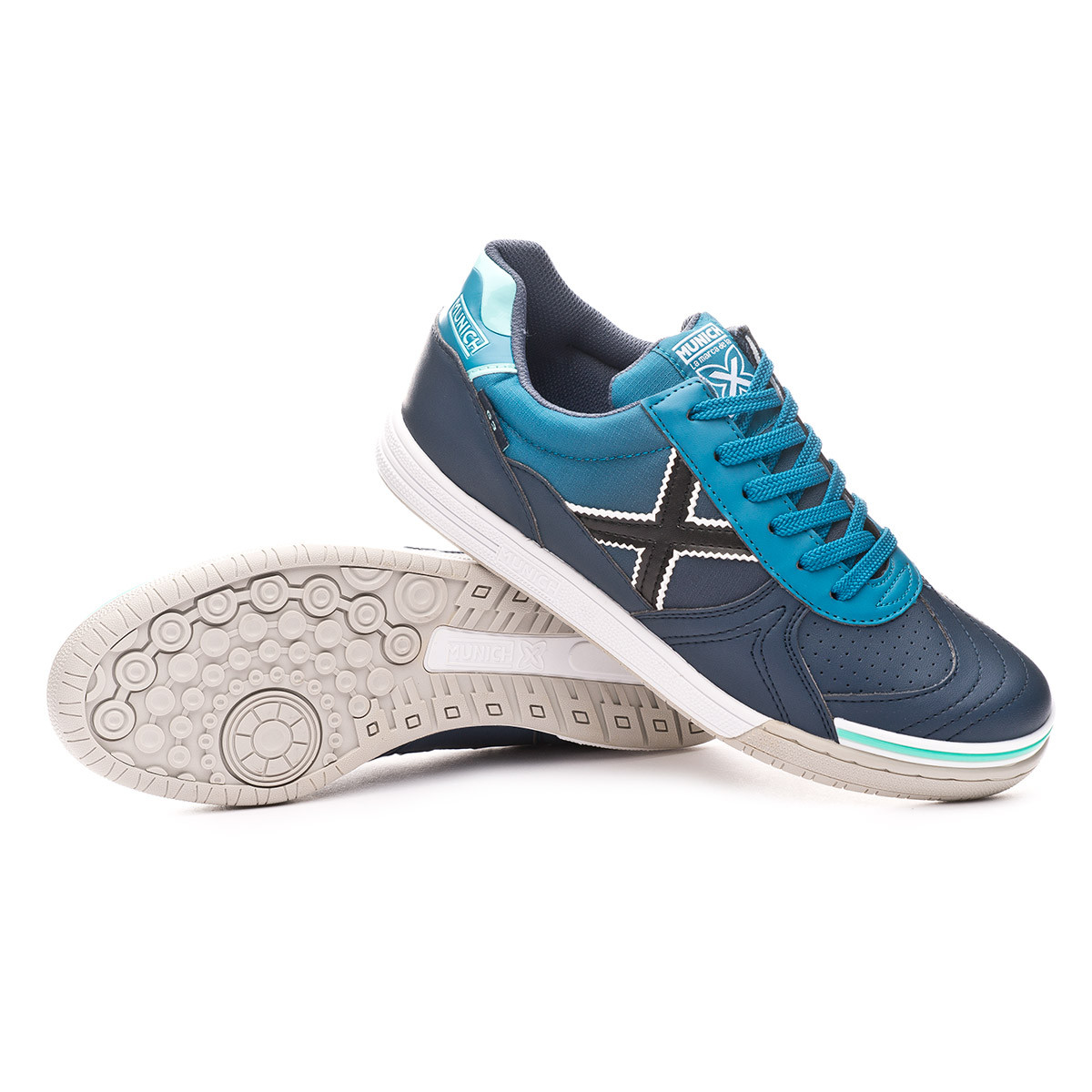 These Munich G3 shoes are made of technical materials featuring a highly resistant PU base combined with flexible, lightweight nylons and mesh. Designed for play on indoor pitches and hard terrain.