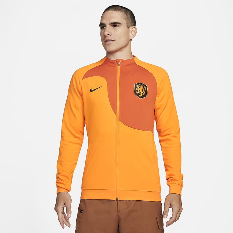 After conquering the basics, take your skills to the next level with the Netherlands Academy Pro Knit Football Jacket in Orange Peel/Campfire Orange/Black.