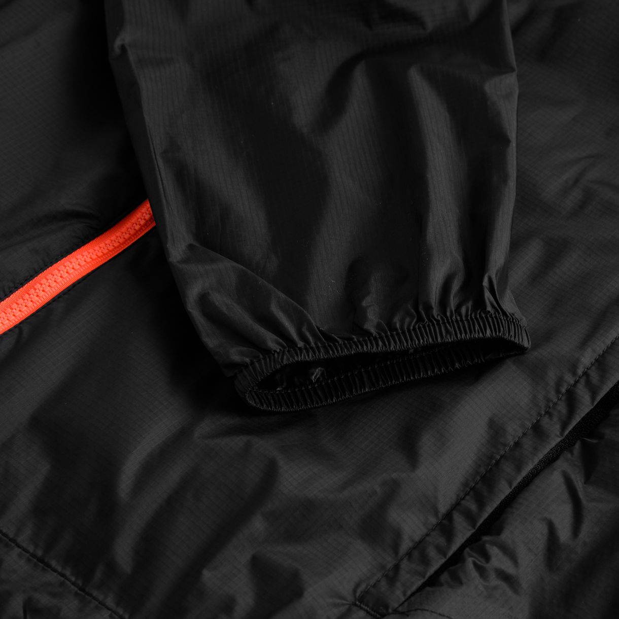 The rain jacket is made from a breathable and water resistant material, so you are always well protected during your training. The jacket has an internal mesh-lining, which helps give added breathability and comfort. In addition the rain jacket is made with ribbed-edges at the wrist, which helps give a tight fit.