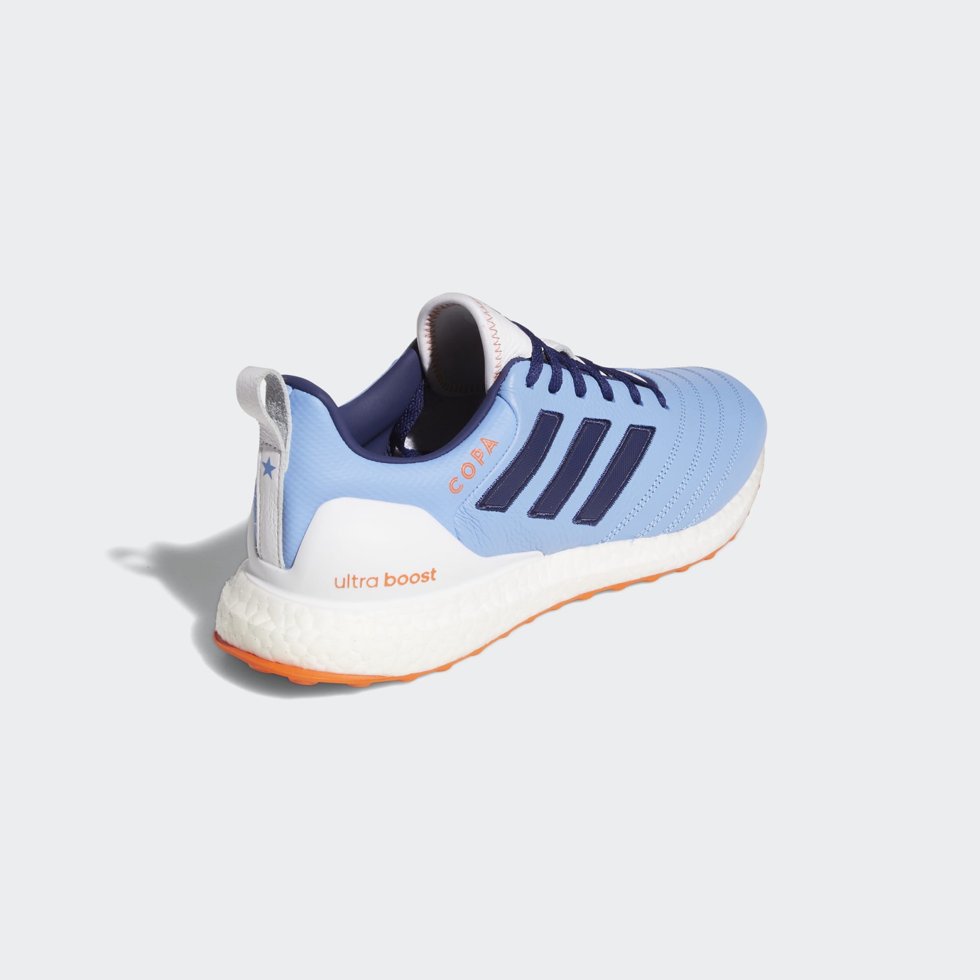 The Ultraboost x Copa collaboration brings a classic football shoe look to comfortable, everyday running shoes with these New York City FC Ultraboost DNA x Copa Shoes in Light Blue / Collegiate Navy / Cloud White.
