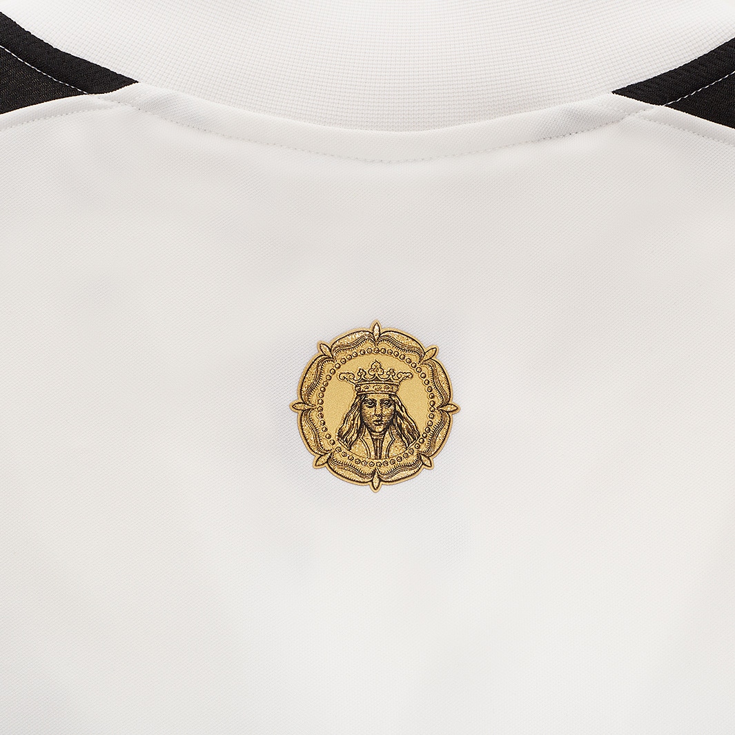 This premium tracksuit jacket celebrates the club’s 132-year history with a sleek white and black design, accented with luxurious gold details containing metal particles for a dazzling effect.
