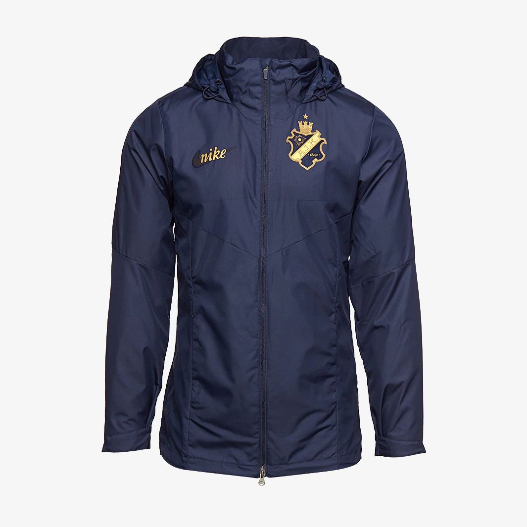 Suit up like Swedish football royalty with the Nike AIK Royal Edition Rain Jacket in Obsidian.