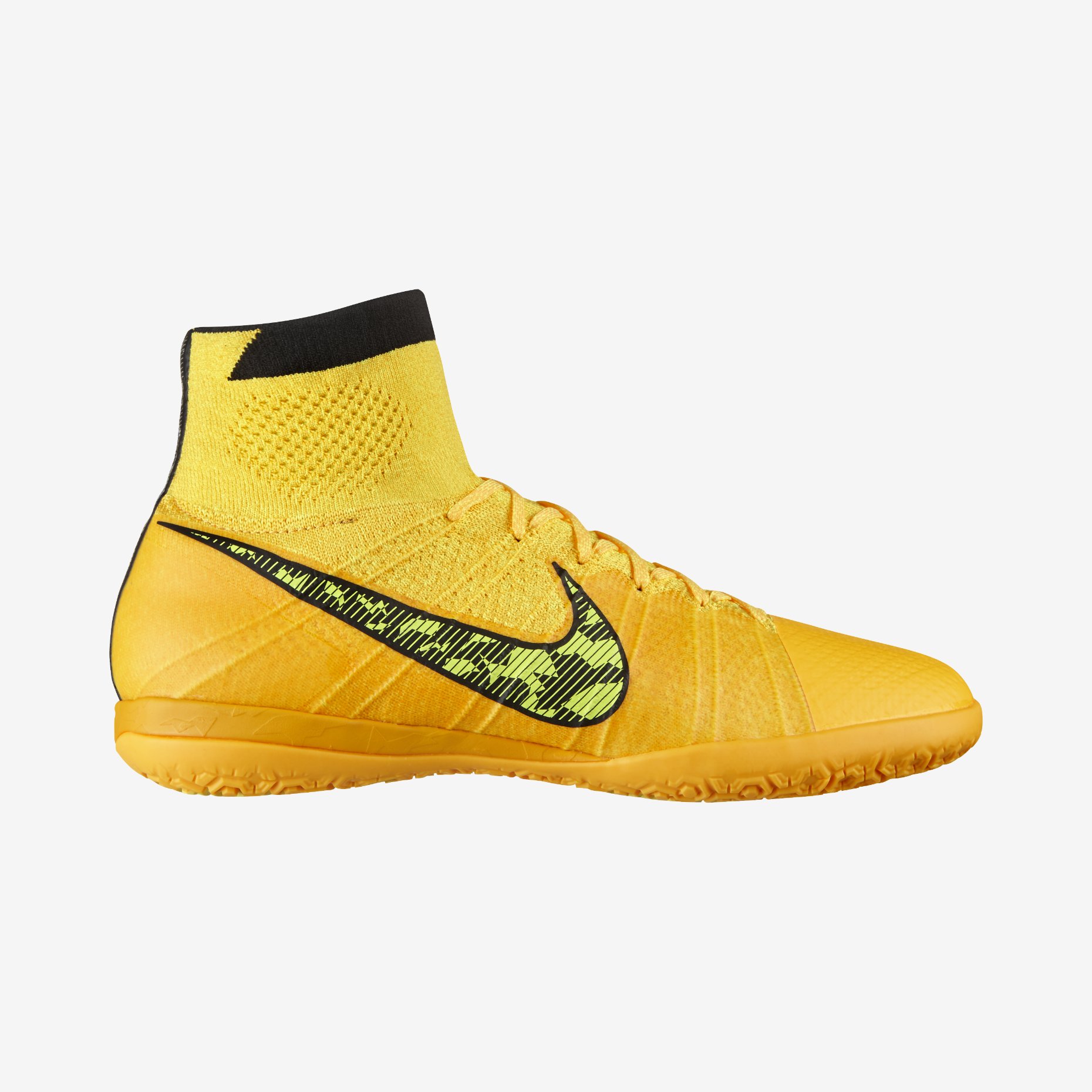 The Elastico Superfly’s revolutionary design is driven by Nike’s leading innovation: Nike Flyknit. A new 3-knit weave brings your foot closer to the ball for enhanced touch at top speed. Designed specifically for the court and other indoor-competition (IC) surfaces, the flexible, low-profile outsole brings the foot closer to the ground and provides quickness in all directions.