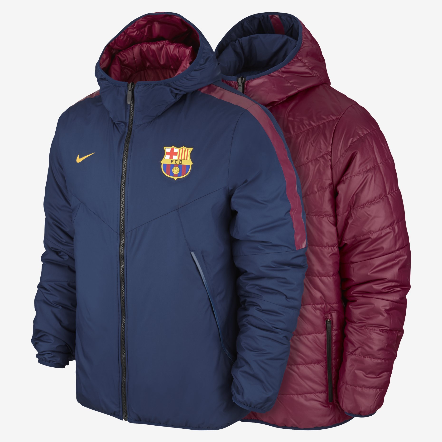 The FC Barcelona Core Padded Reversible Jacket delivers two unique looks and cold-weather comfort with lightweight Thermore fill and quilted construction. Water-repellent fabric helps keep the elements at bay wherever you go, while team details on one side show your support for Barca.