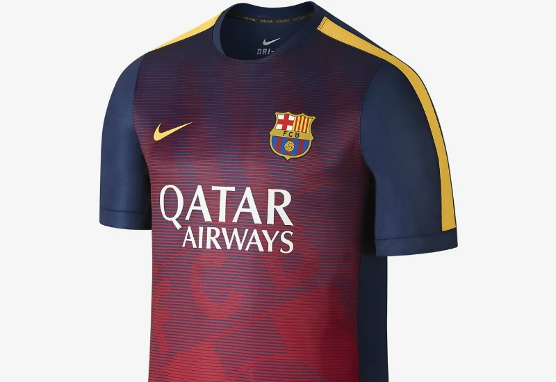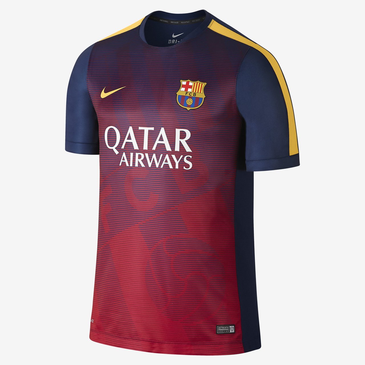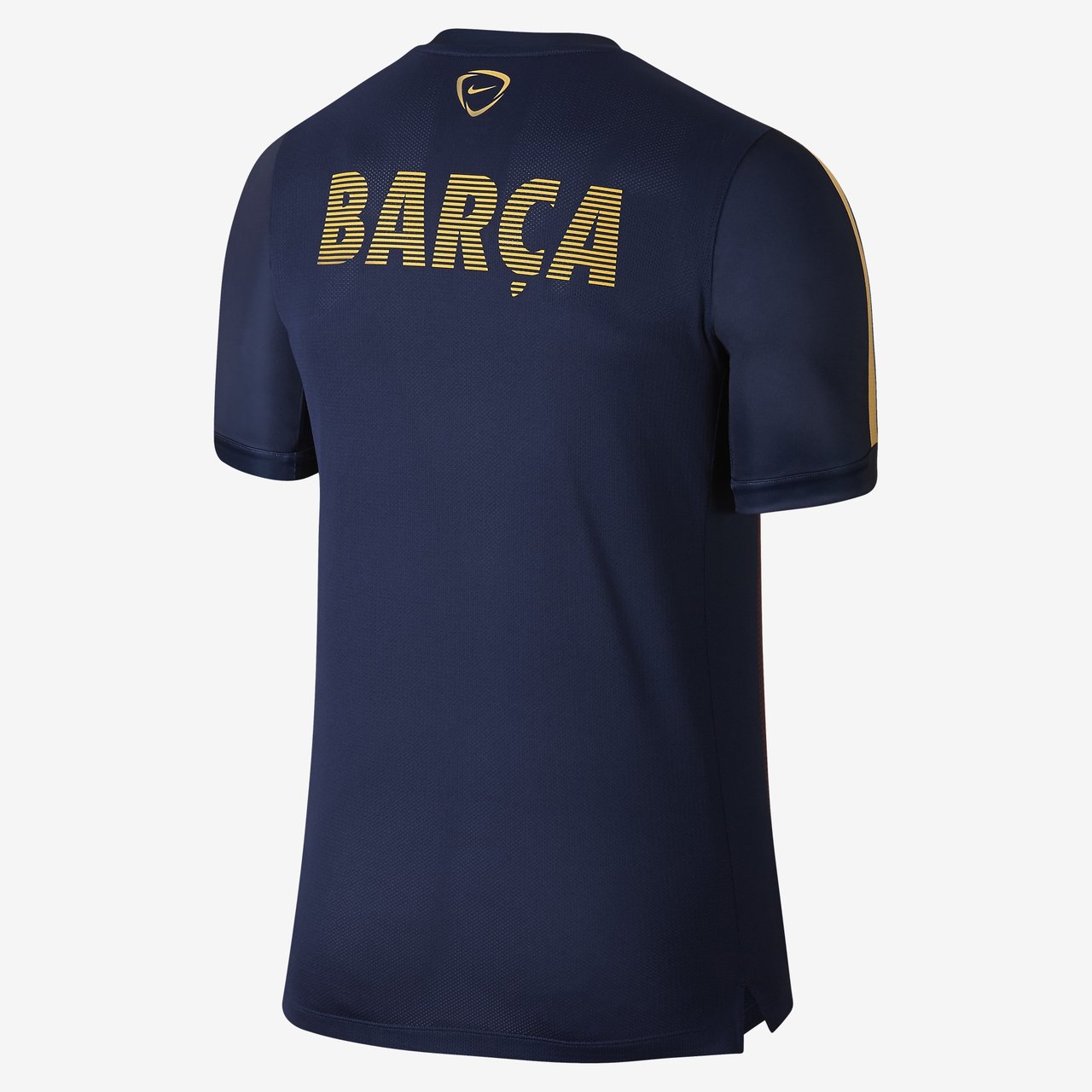 The FC Barcelona Squad Short-Sleeve Pre-Match 2 Nike Football Shirt is made from sweat-wicking fabric with mesh side and back panels to help keep you dry and ventilated. Bold team details stand out for a proud look on and off the pitch.