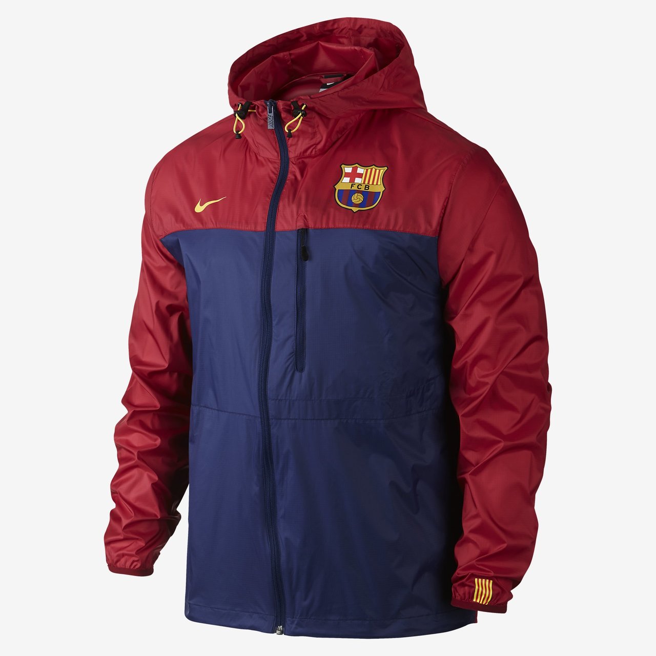 The FC Barcelona Winger Authentic Nike Football Jacket is made from lightweight, weather-resistant fabric with a hood to help keep out light wind and rain. Bold screen prints show your support for an elite team, and the packable design provides convenient storage when conditions improve.