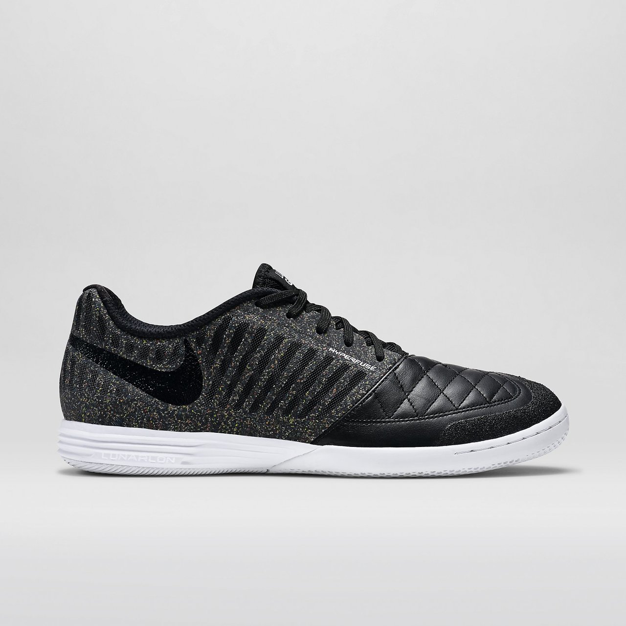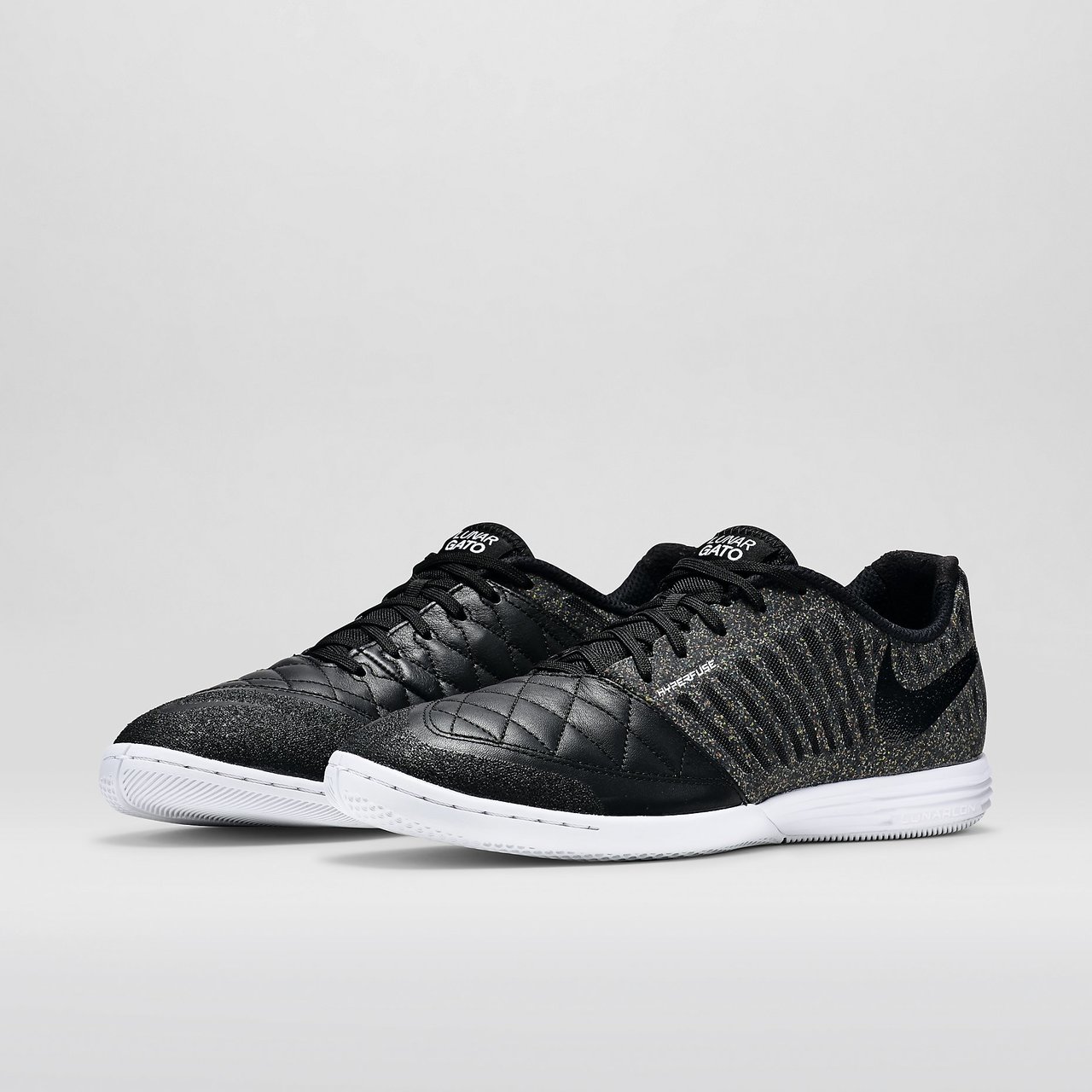 The FC247 LunarGato II Nike Indoor-Competition Football Shoe is ideal for 5-a-side with goat leather at the forefoot for a smooth, natural feel and precision strikes. Lunarlon cushioning and an articulated traction pattern deliver a springy, responsive ride and quick cuts on indoor surfaces.