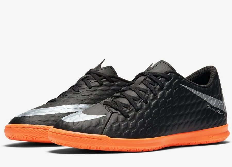 The Nike HypervenomX Phade 3 Strike Night Indoor/Court Football Shoe features asymmetrical lacing and allover texture for an expanded strike zone and excellent touch during play.