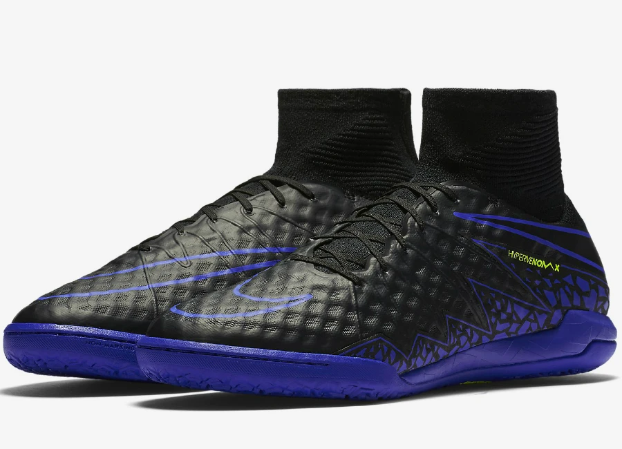 The Nike HypervenomX Proximo II IC Dark Lightning Pack Football Shoe features a Dynamic Fit collar that locks your foot in place for precise control and unstoppable quickness. The non-marking rubber outsole offers superior traction when playing on the court and indoor surfaces.