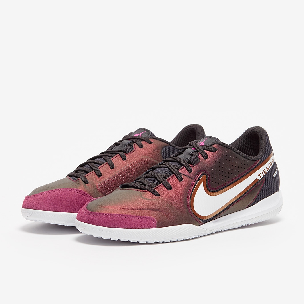 Attack with precision on the biggest stage wearing Nike Tiempo Legend IX Academy IC football shoes in Space Purple/White, featuring a lightweight design that’s built for fast, accurate play.