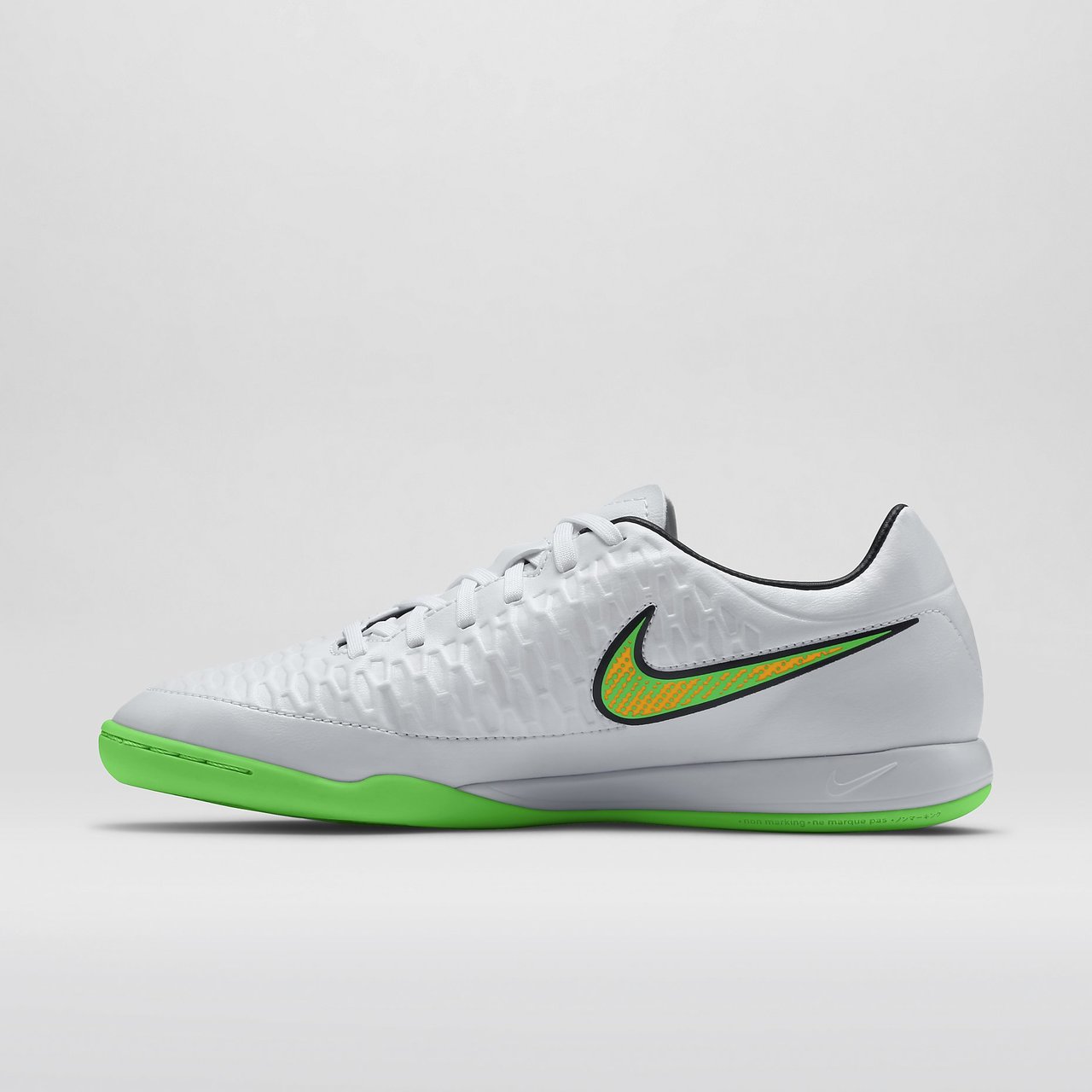 The Nike Magista Onda Indoor-Competition Football Shoe is designed for the innovative playmaker who demands control during play, featuring a synthetic leather upper and allover grippy texture for precision striking, passing and dribbling. A durable rubber outsole gives you high-performance traction on indoor surfaces.