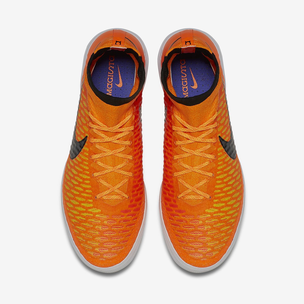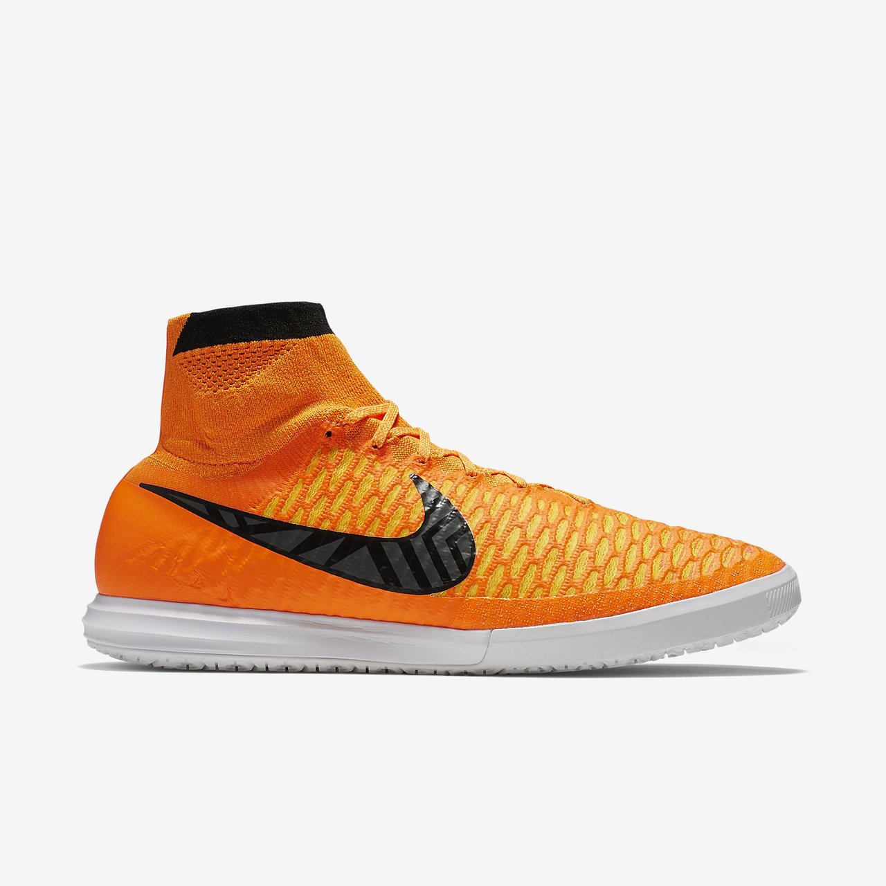 The Nike MagistaX Proximo Indoor/Court Football Trainer provides precise control and unstoppable quickness for playmakers who dominate the small-sided game. The Dynamic Fit collar fits over your ankle for a seamless fit that locks your foot in place. The tongue-less Flyknit upper with Flywire cables seamlessly integrates areas of high breathability, stretch and support.
