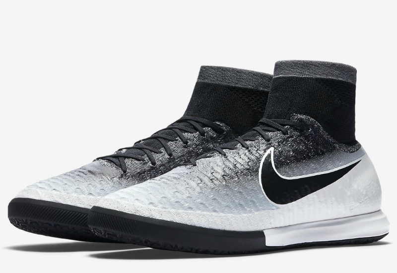 The one-piece upper features aggressive 3-D textured Flyknit with All Conditions Control (ACC) technology for closer ball feel and enhanced touch in dry or wet weather. The non-marking indoor/court (IC) outsole provides superior traction when playing indoors or on the street. Ultralight Lunarlon cushioning adds responsive shock absorption.
