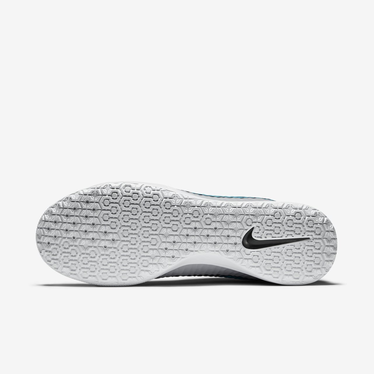 The Nike MagistaX Proximo Indoor/Court Football Trainer provides precise control and unstoppable quickness for playmakers who dominate the small-sided game. The Dynamic Fit collar fits over your ankle for a seamless fit that locks your foot in place. The tongue-less Flyknit upper with Flywire cables seamlessly integrates areas of high breathability, stretch and support.