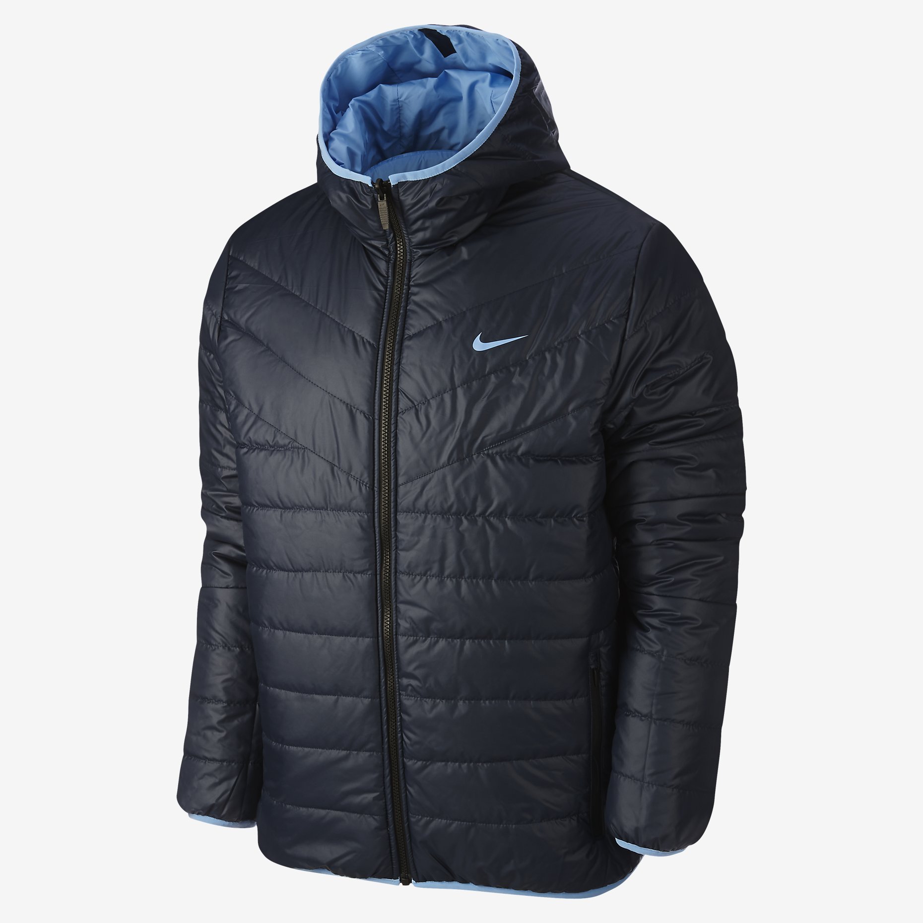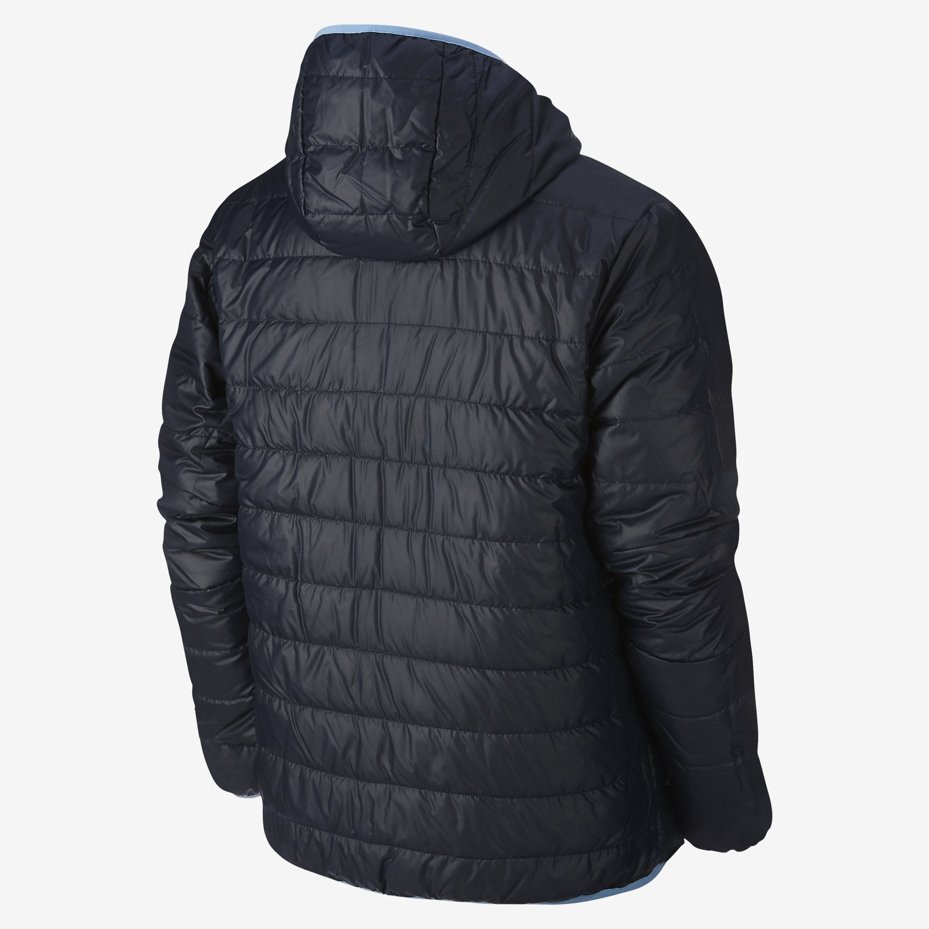 The Manchester City FC Core Padded Reversible Nike Jacket delivers two unique looks and cold-weather comfort through its dual-color quilted construction and lightweight Thermore ® fill. Water-repellent fabric helps keep the elements at bay wherever you go, and team details on one side show your support for MCFC.