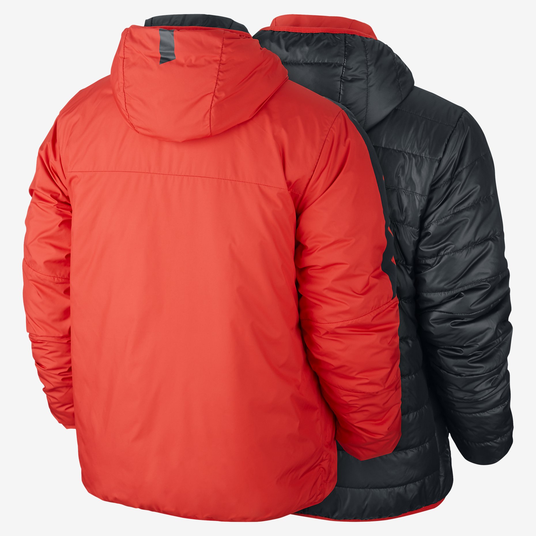 The Manchester United Core Padded Reversible Nike Jacket delivers two unique looks and cold-weather comfort with lightweight Thermore ® fill and quilted construction. Water-repellent fabric helps keep the elements at bay wherever you go, and team details on one side show your support for the Red Devils.