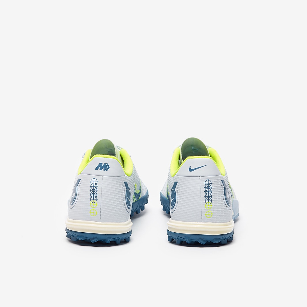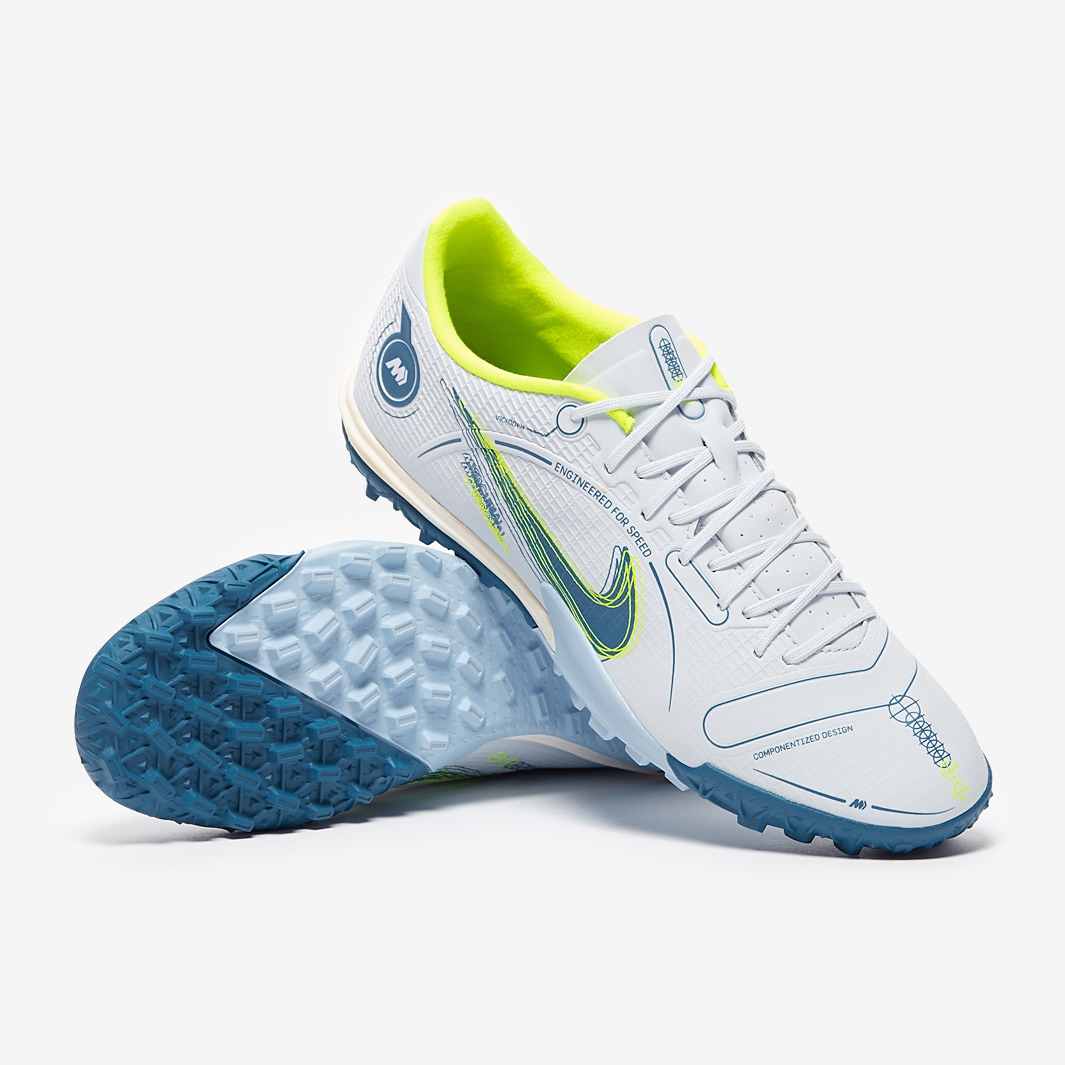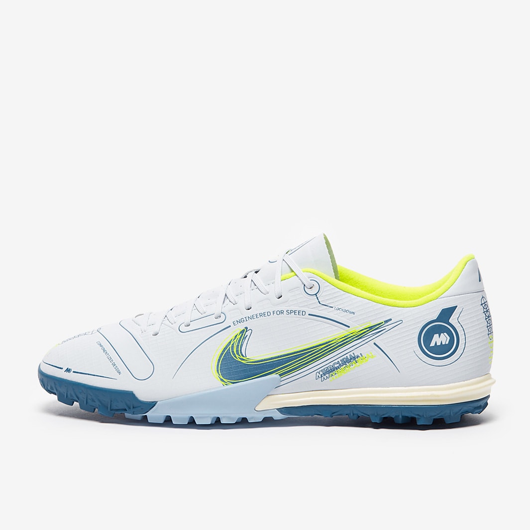 Look fast, play fast wearing Nike Mercurial Vapor 14 Academy TF football shoes in Football Grey/Dark Marina Blue, featuring a lightweight, minimalist design that’s engineered for speed.