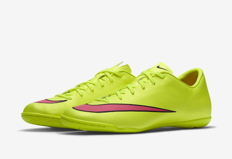 The Nike Mercurial Victory V Indoor-Competition Football Shoe is built for fast-paced play with a full-length, non-marking rubber outsole for explosive traction on indoor surfaces.