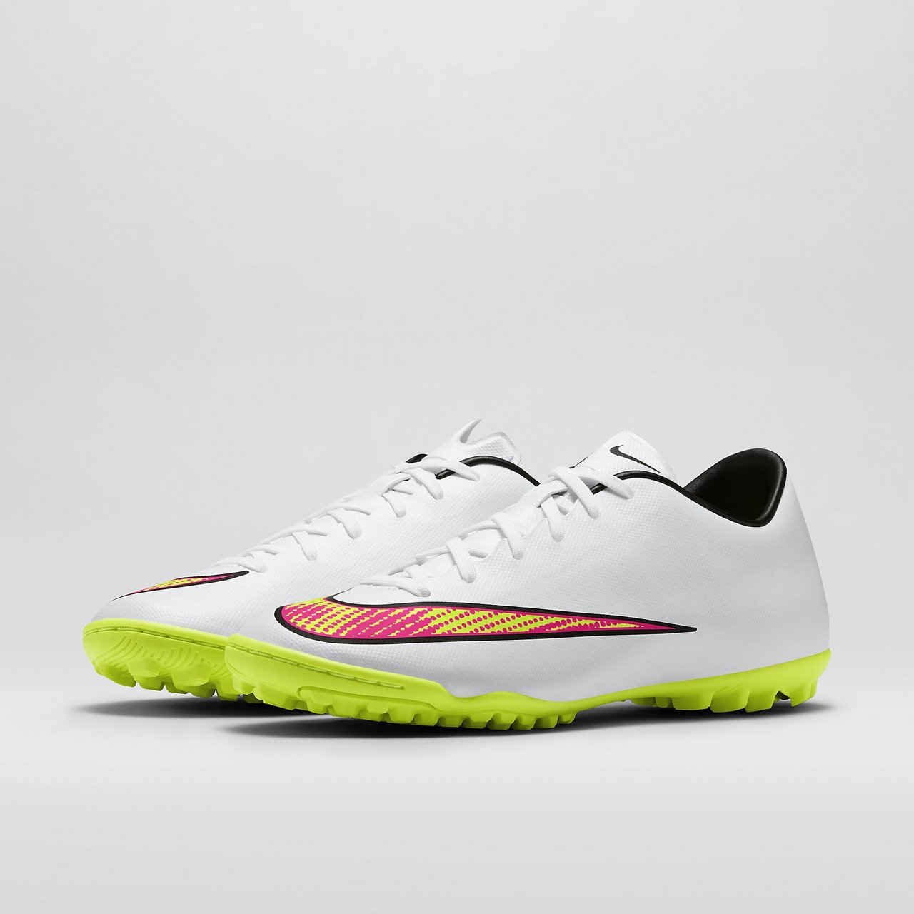 The Nike Mercurial Victory V Turf Football Boot is built for speed with an innovative outsole pattern designed for traction and touch on all varieties of artificial turf surfaces.