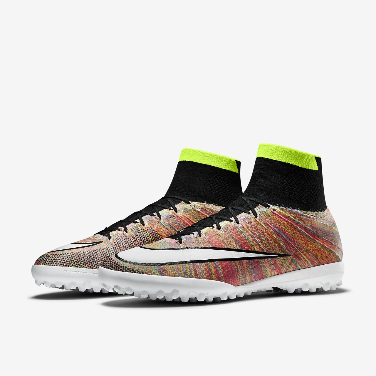 The Nike MercurialX Proximo 'Street' Turf Football Trainer brings explosive speed to the small-sided game with a locked-down fit and low-profile traction. The Dynamic Fit collar fits over your ankle for a seamless fit that locks your foot in place. The tongue-less Flyknit upper with Flywire cables seamlessly integrates areas of high breathability, stretch and support.