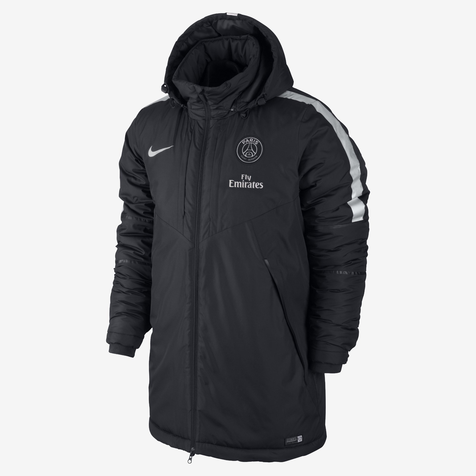 The Paris Saint-Germain Squad Medium Fill Nike Jacket is made with a multi-panel hood to keep the elements at bay and team details that show your support for PSG. Mid-weight synthetic insulation retains heat even when wet, so you stay warm on the sideline or in the stands.