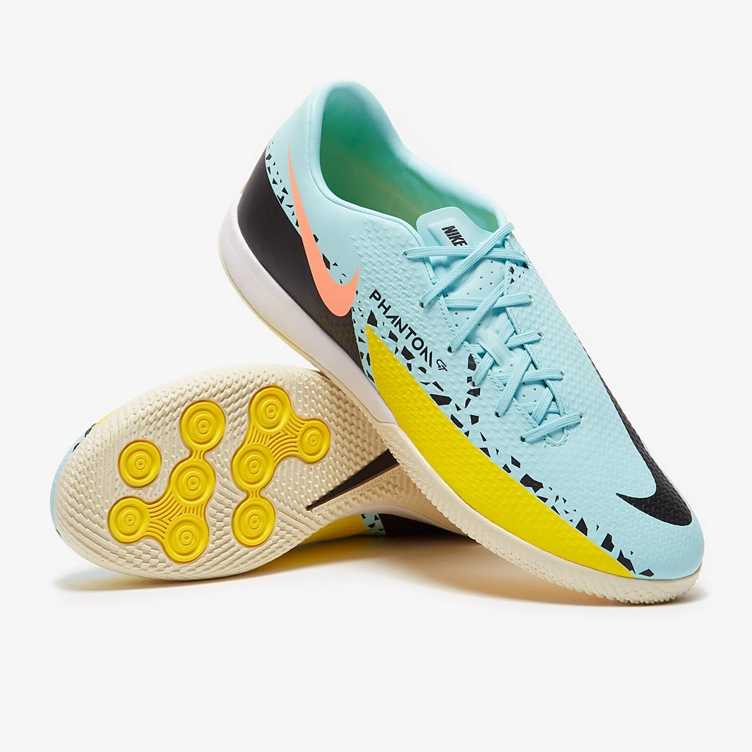 These are the Nike Phantom GT II Academy IC football shoes in Glacier Ice/Black/Yellow Strike, featuring a refreshed upper that’s tuned for touch.