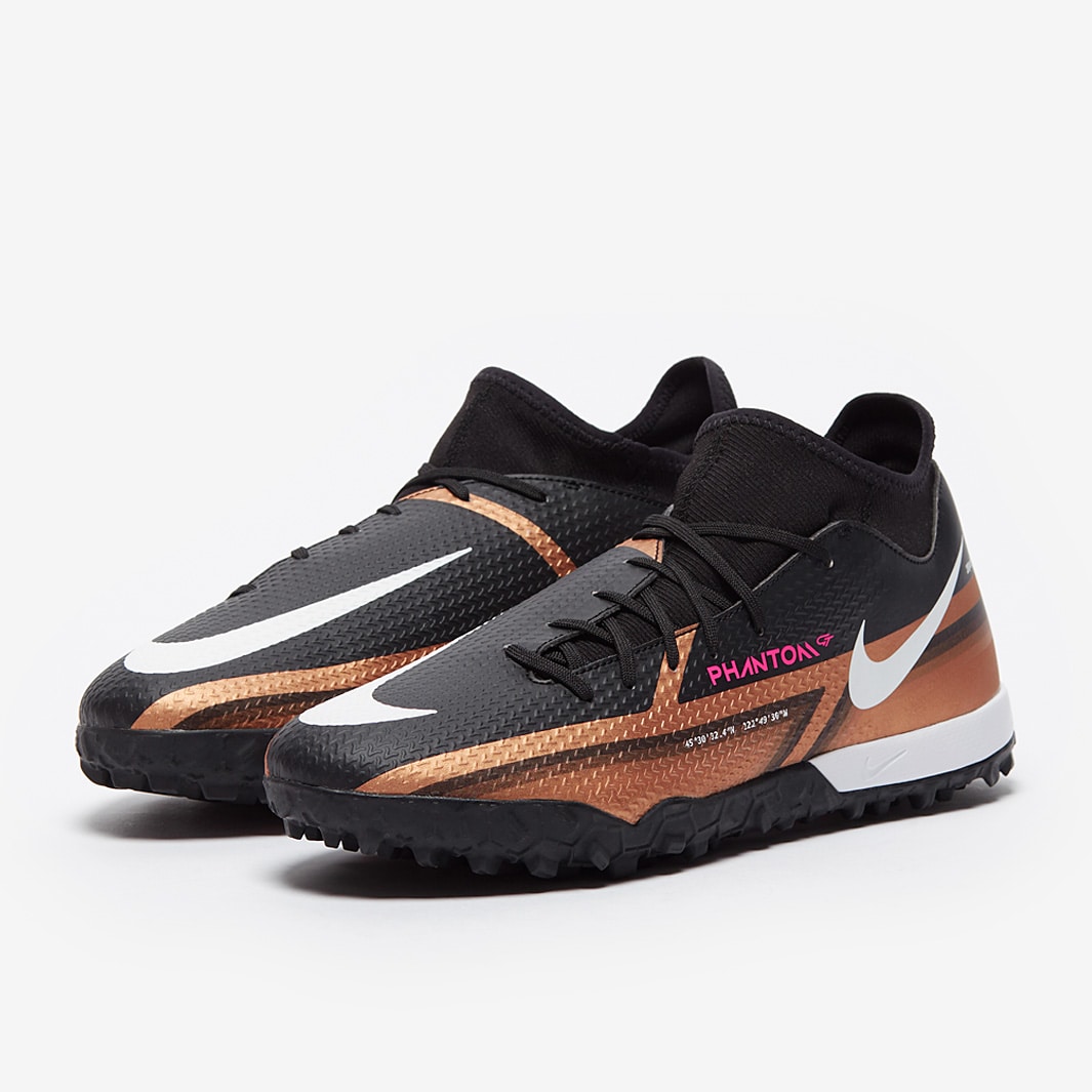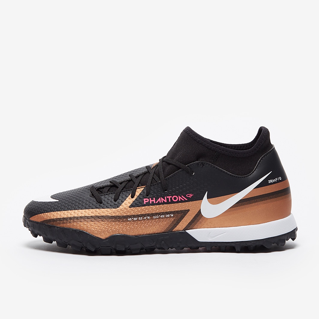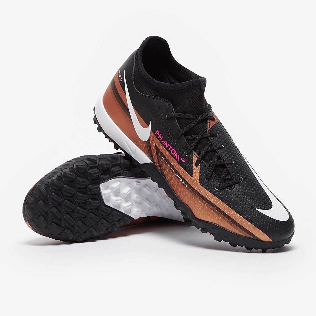 Show your skills on the biggest stage wearing Nike Phantom GT II Academy DF TF football shoes in Metallic Copper/Metallic Copper, featuring a refreshed upper that’s tuned for touch.