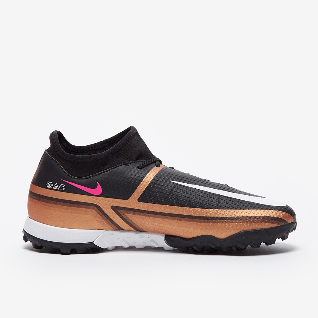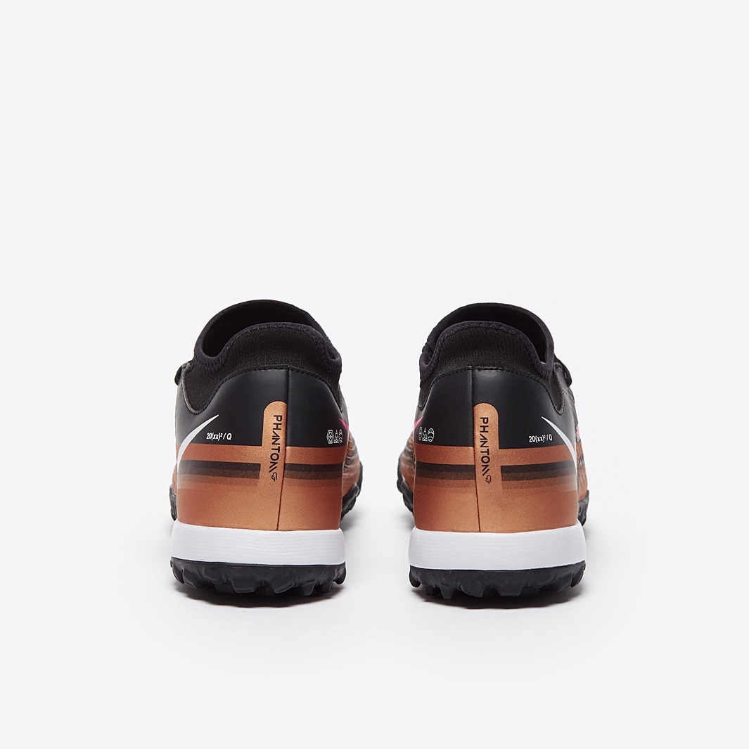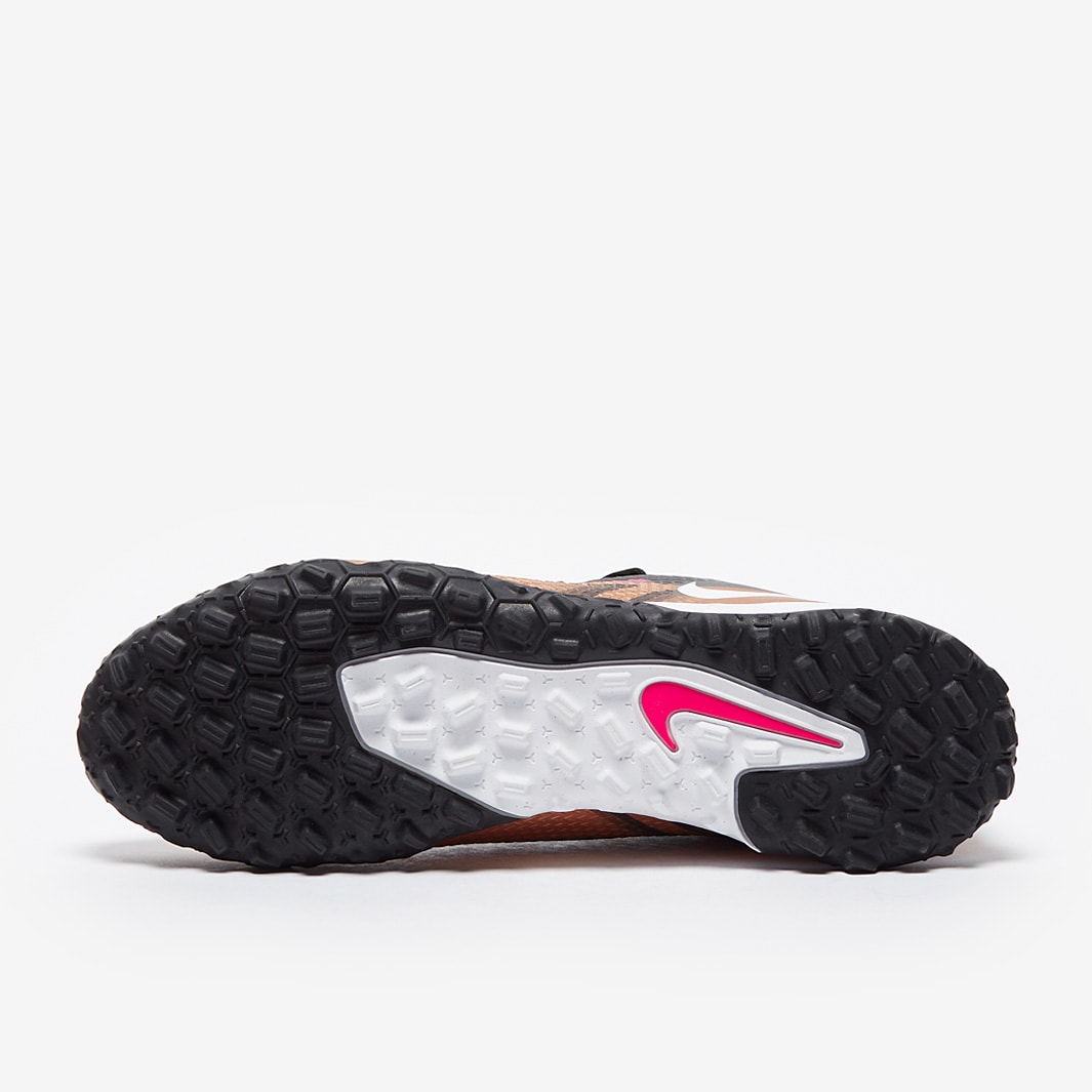 Show your skills on the biggest stage wearing Nike Phantom GT II Academy DF TF football shoes in Metallic Copper/Metallic Copper, featuring a refreshed upper that’s tuned for touch.