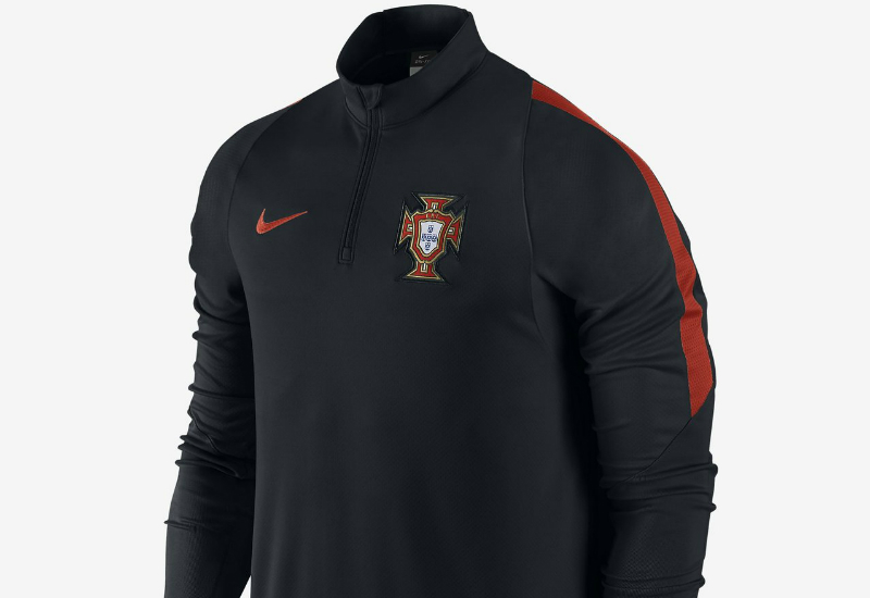 The lightweight Portugal Drill Football Top by Nike is designed for training and warm-up comfort on the pitch. A quarter-zip construction with a mock neck provides custom coverage.