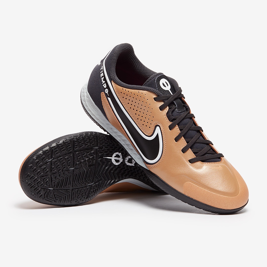 Attack with poise and precision wearing Nike React Tiempo Legend IX Pro IC football shoes in Metallic Copper/White/Off Noir, featuring a lightweight design that’s built for fast, accurate play.