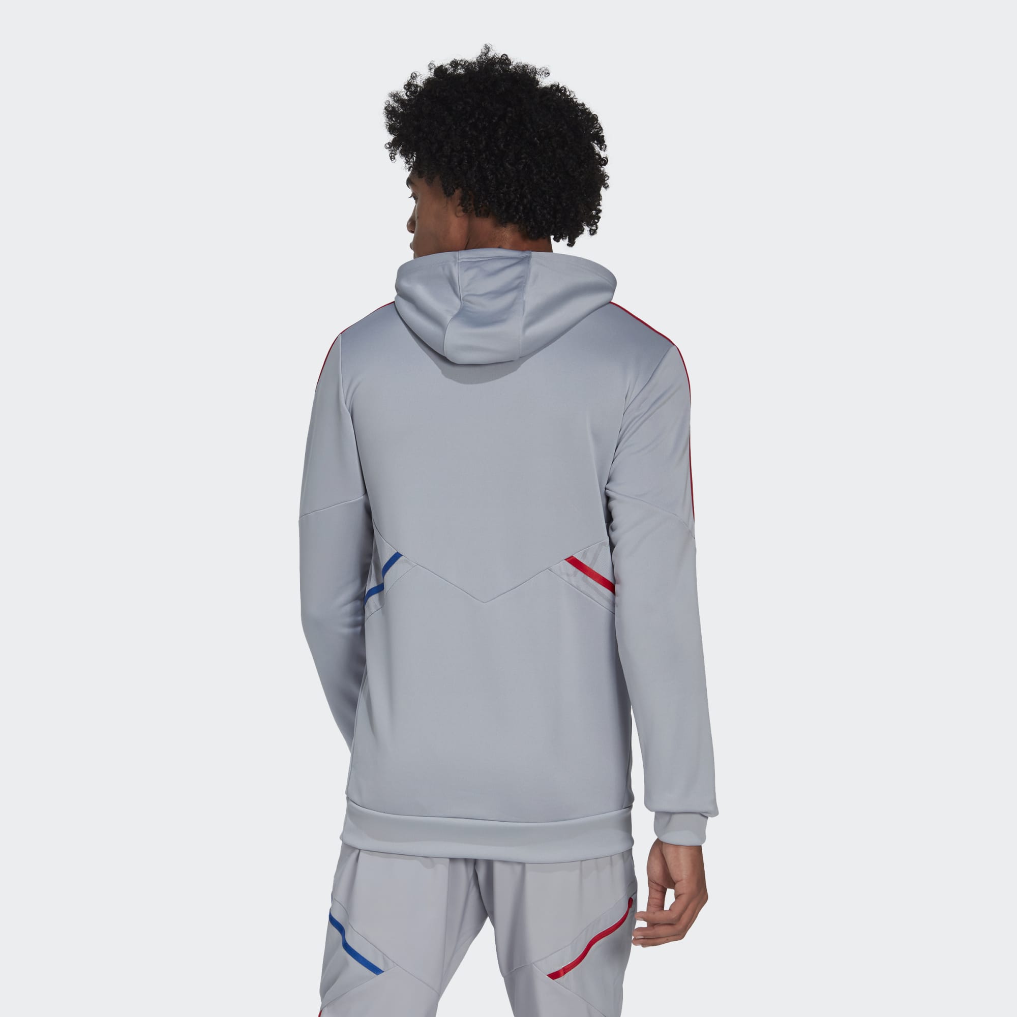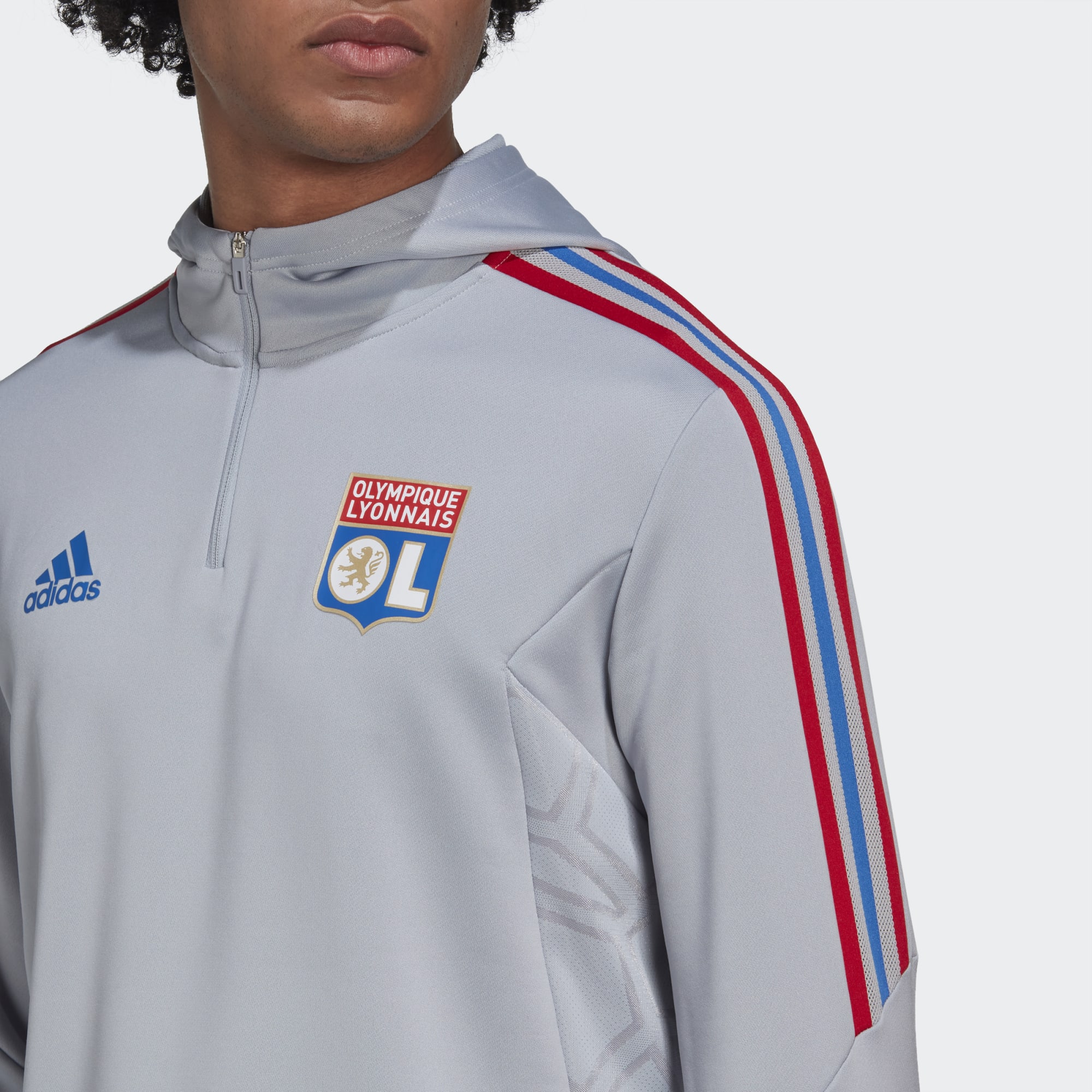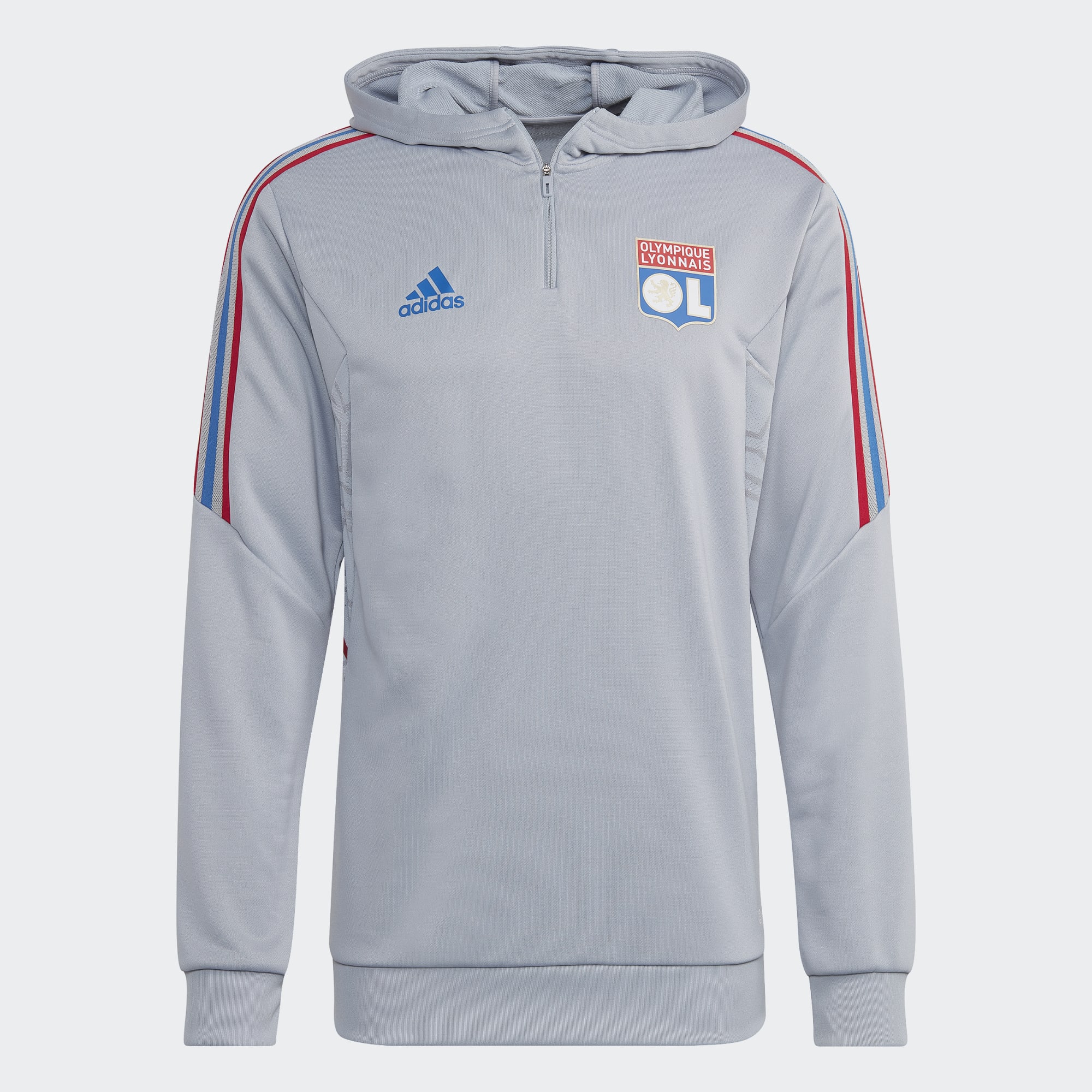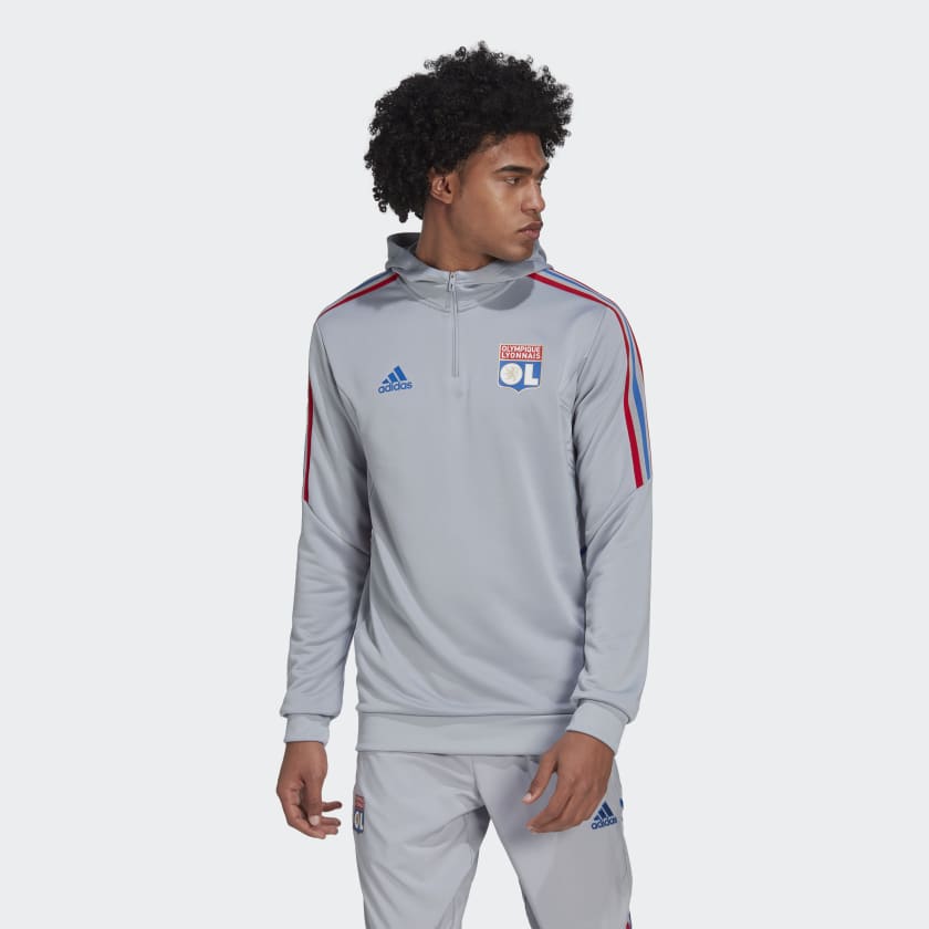 This adidas football hoodie honours Olympique Lyonnais with red-and-blue details inspired by the 22/23 home kit.