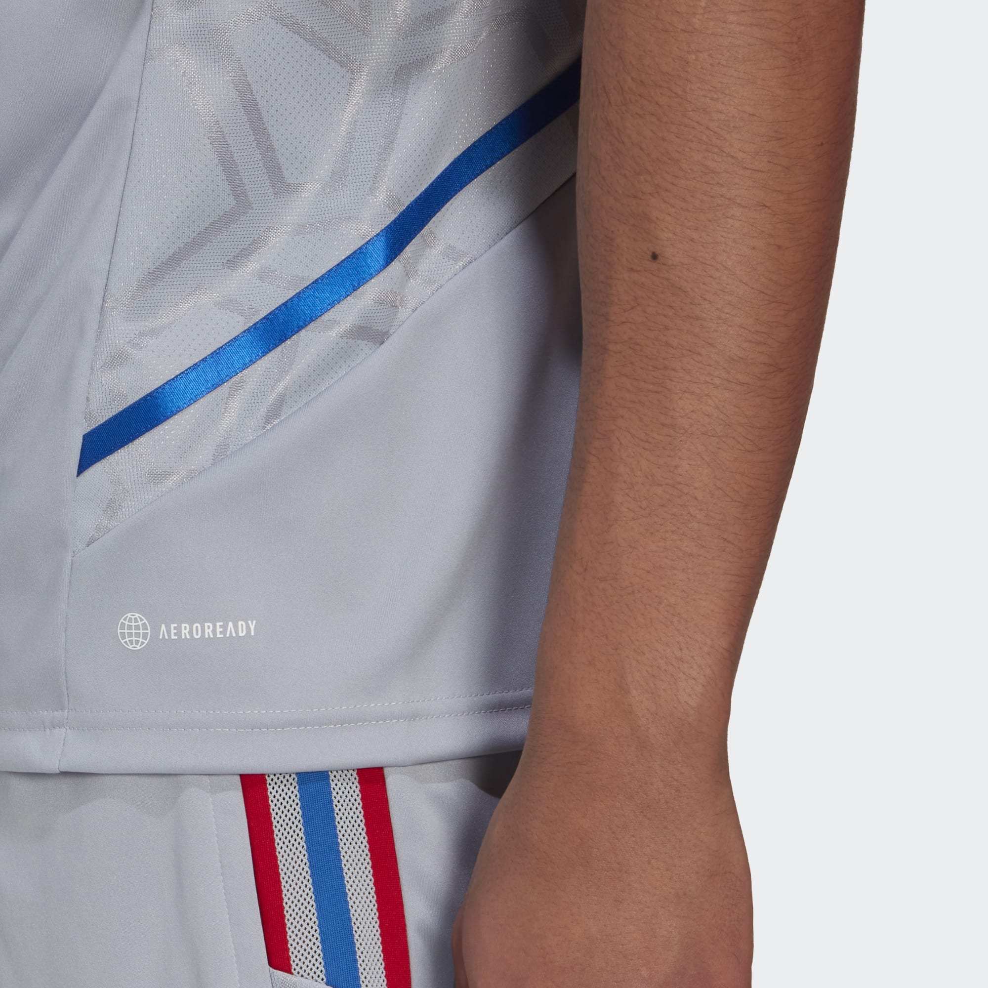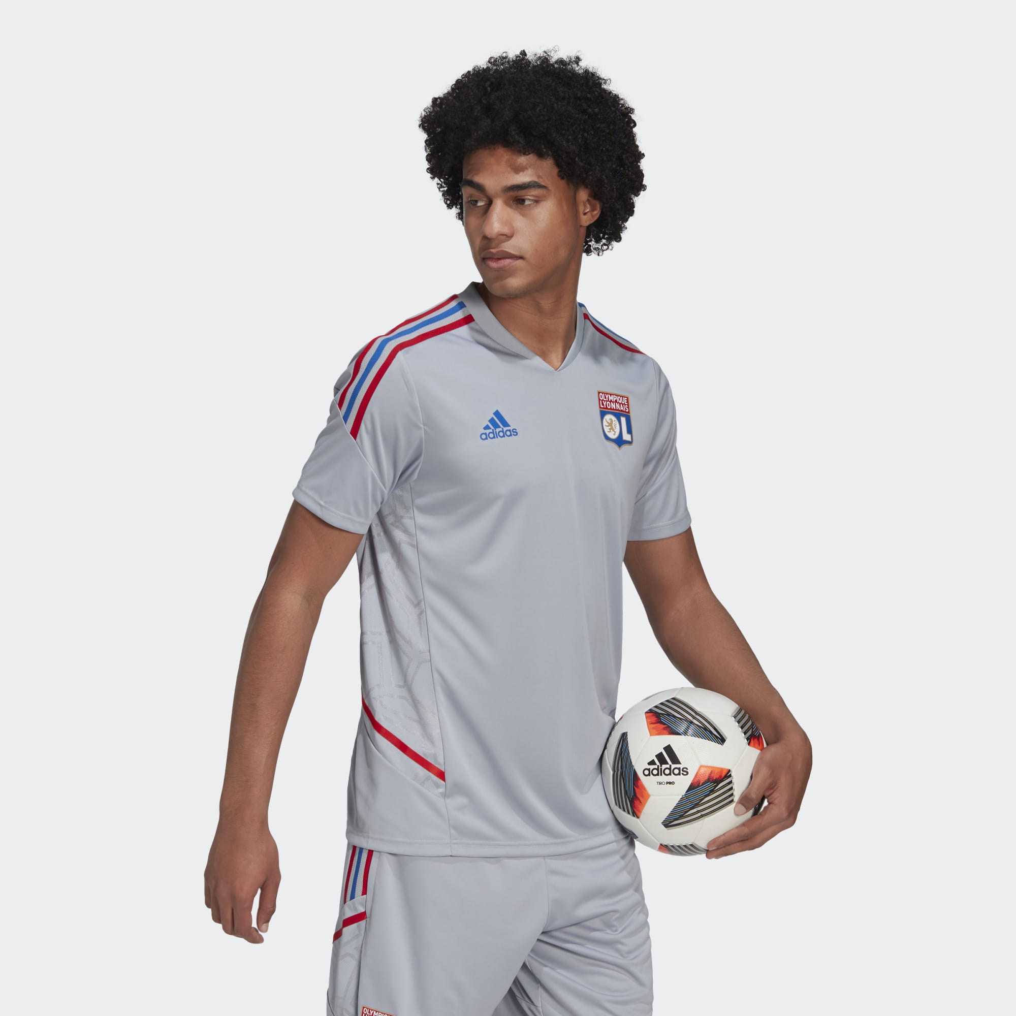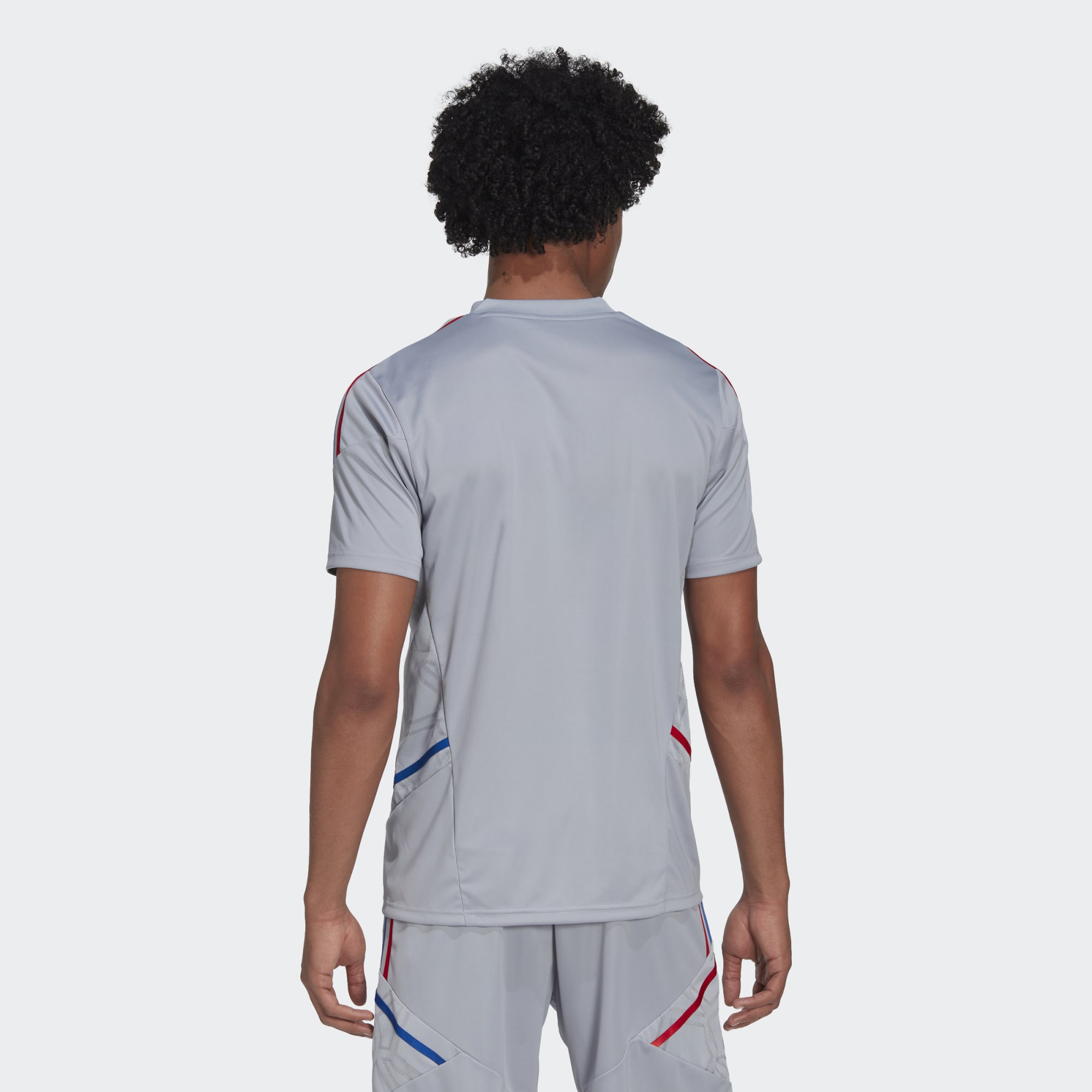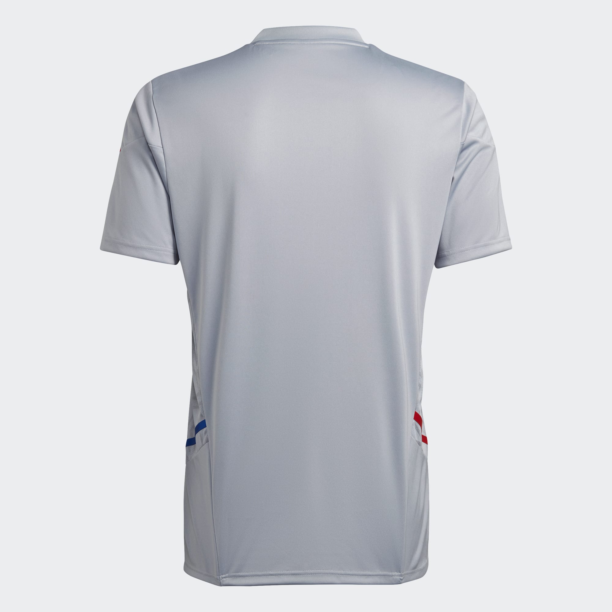 Borrowing the red-and-blue 3-Stripes from the club's 22/23 home kit, this adidas Olympique Lyonnais training jersey is built for movement.