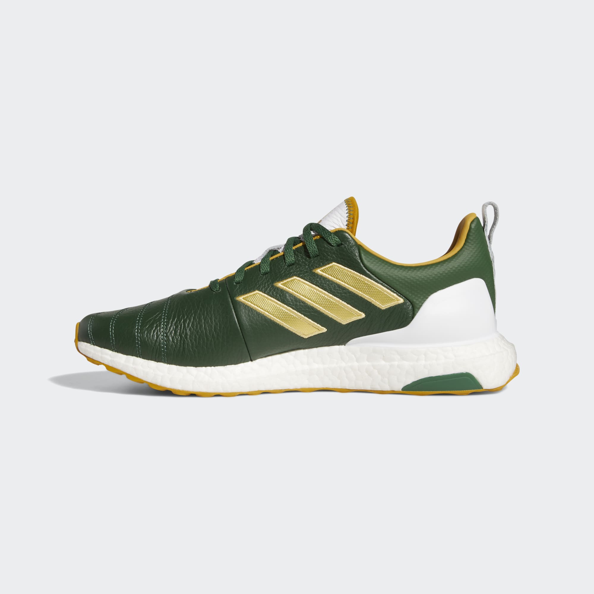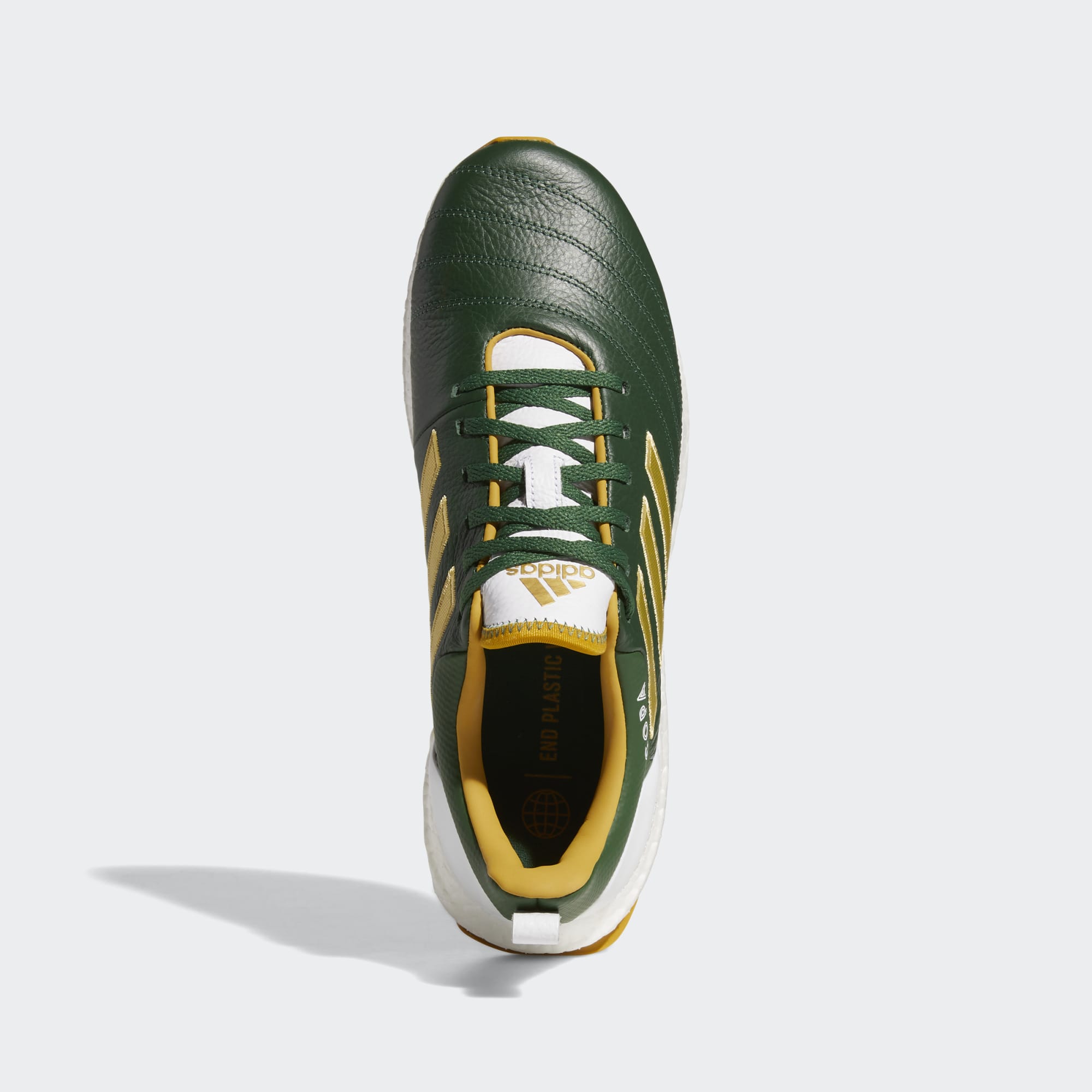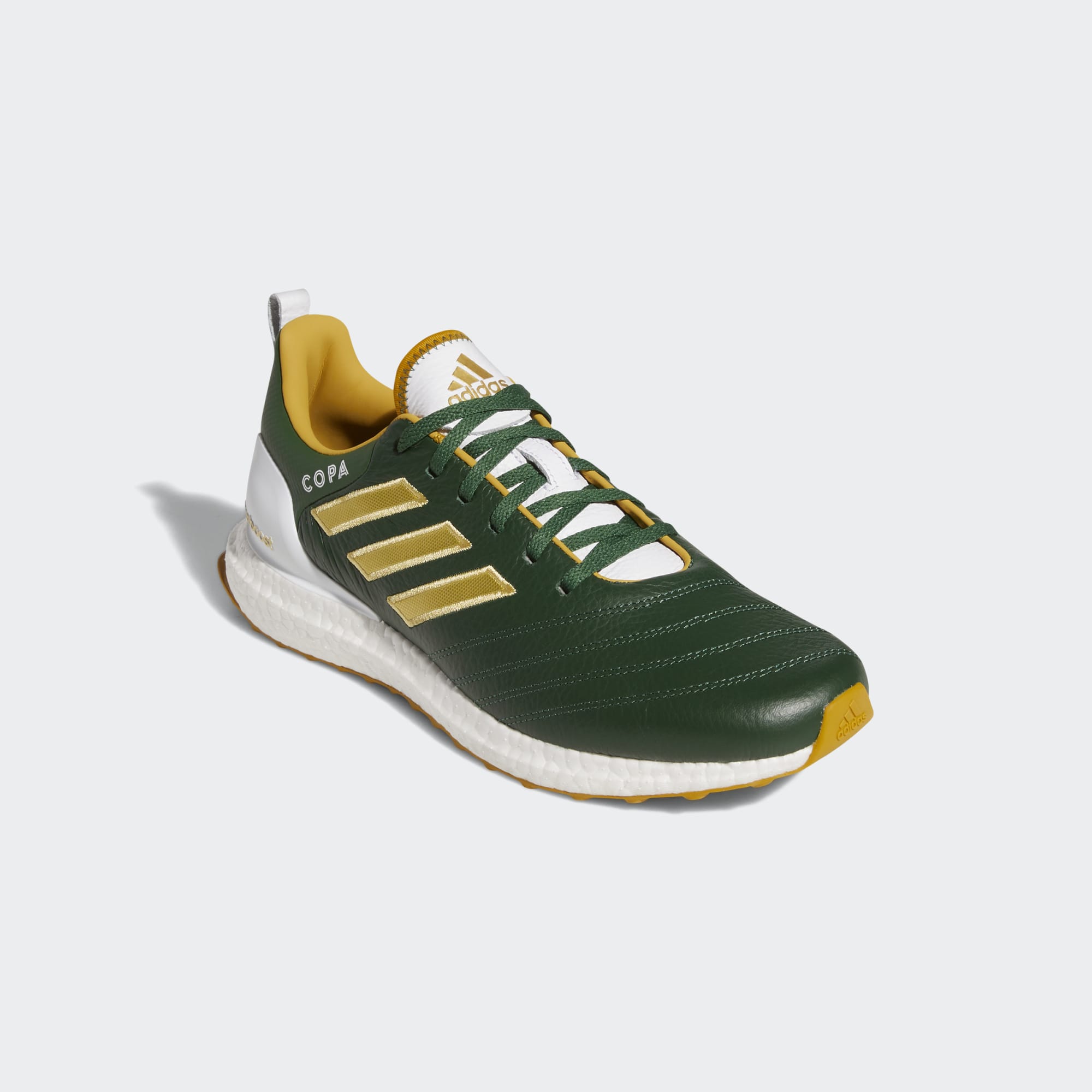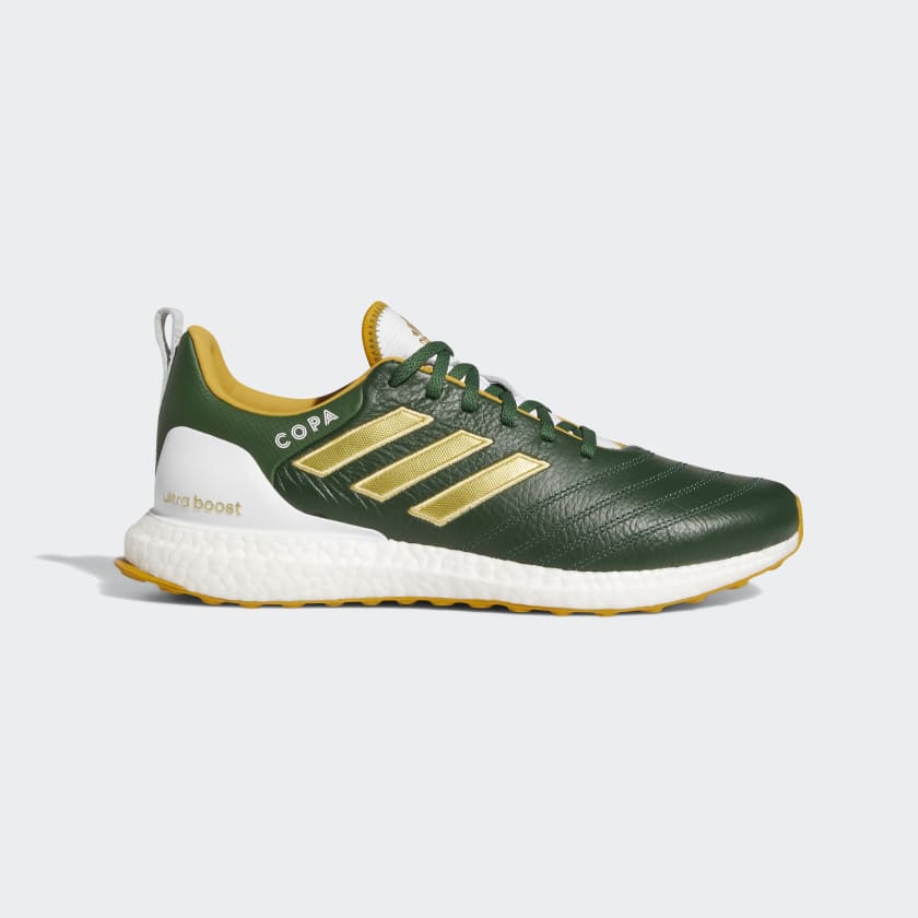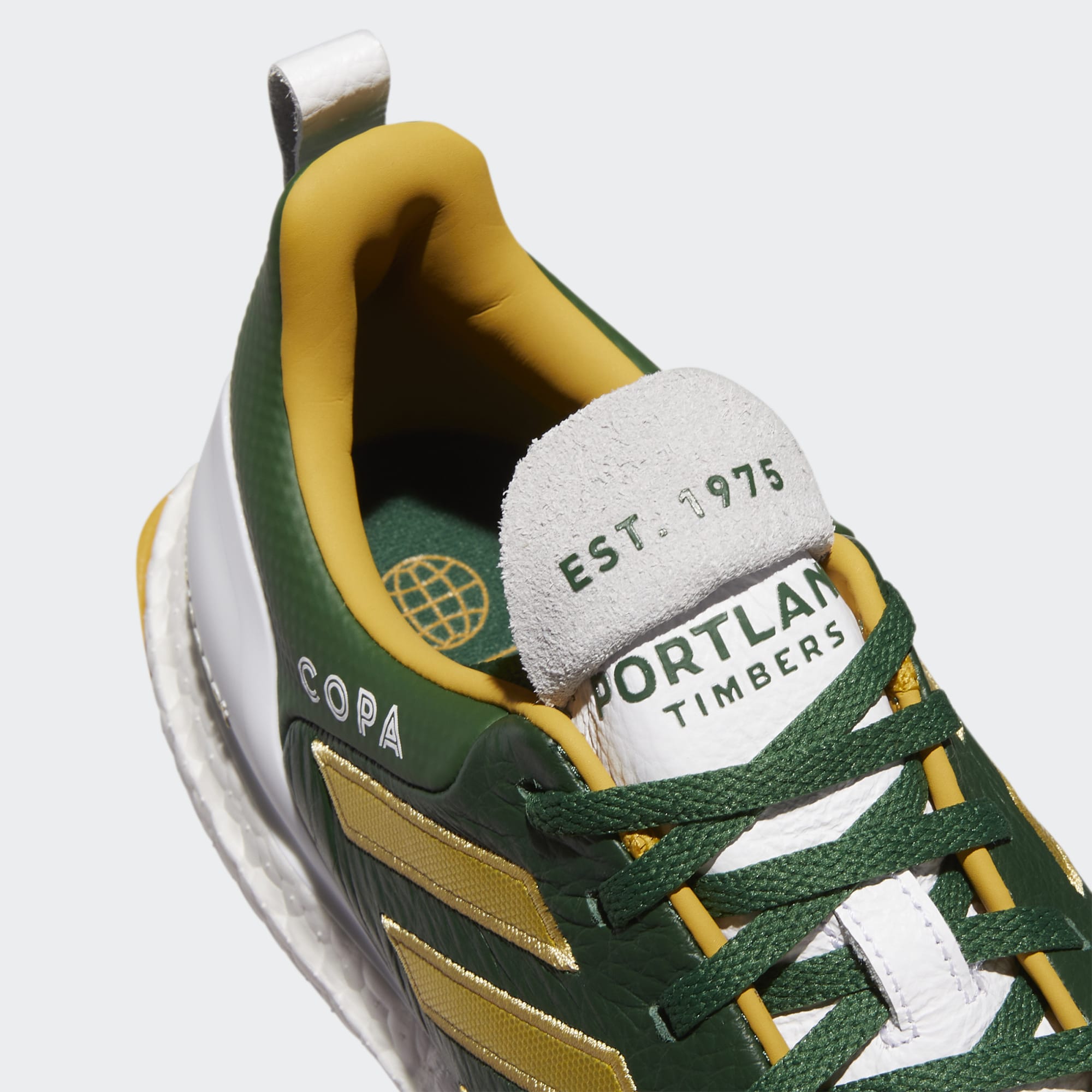 The Ultraboost x Copa collaboration brings a classic football shoe look to comfortable, everyday running shoes with these Portland Timbers Ultraboost DNA x Copa Shoes - Dark Green / Gold Metallic / Cloud White.