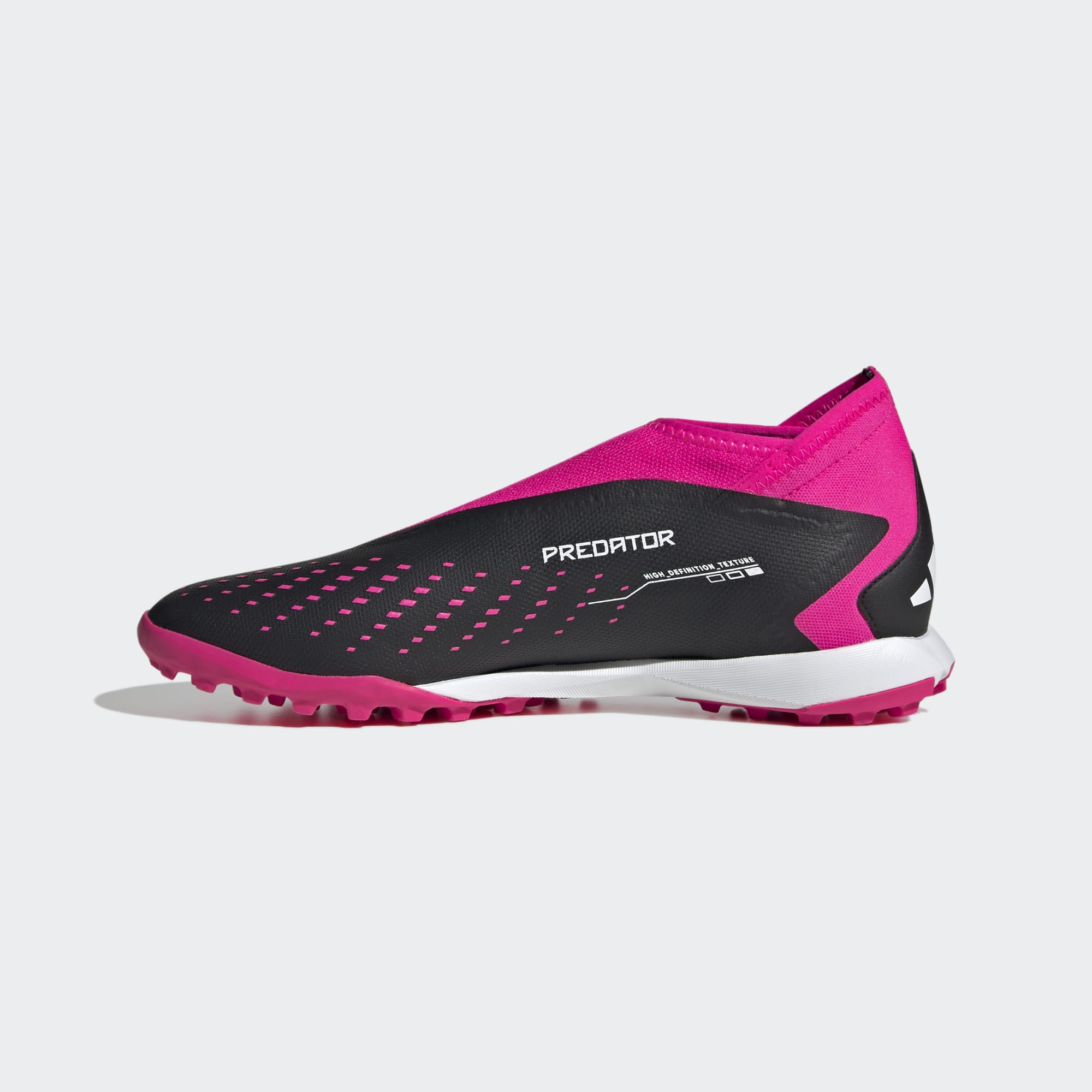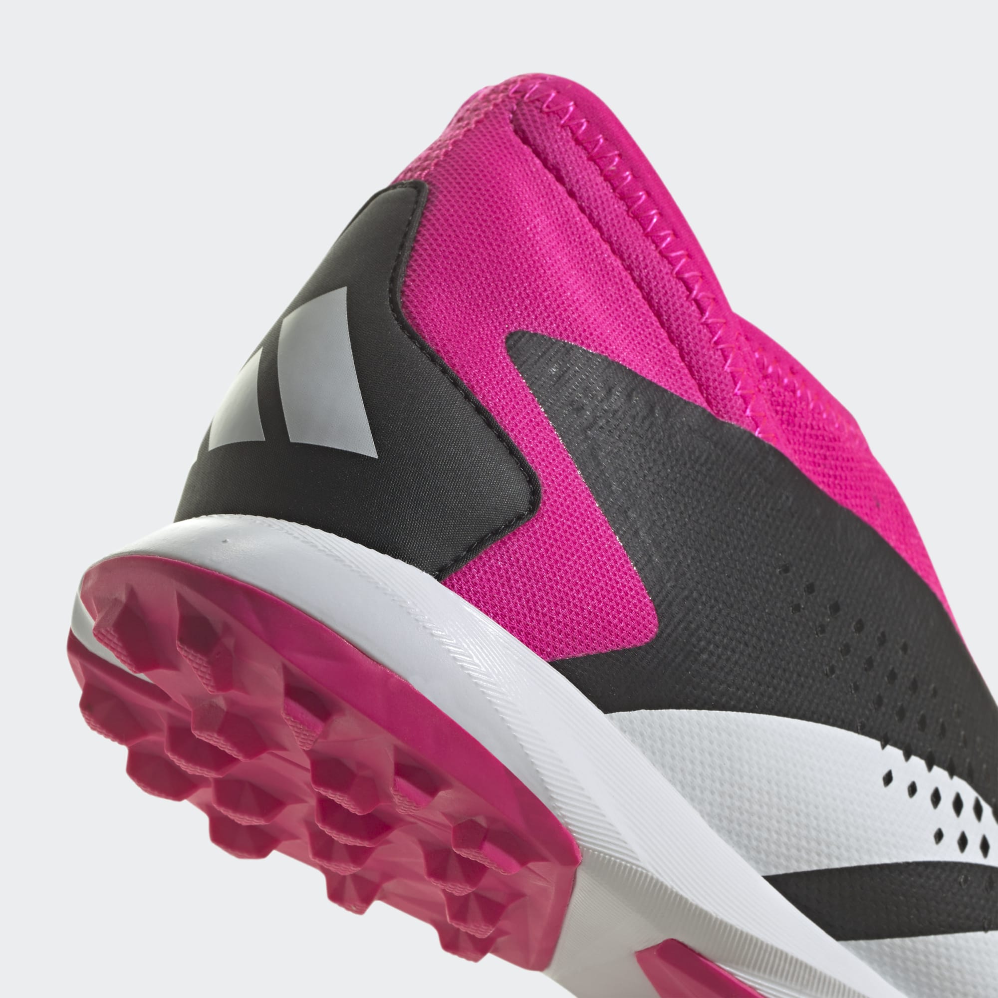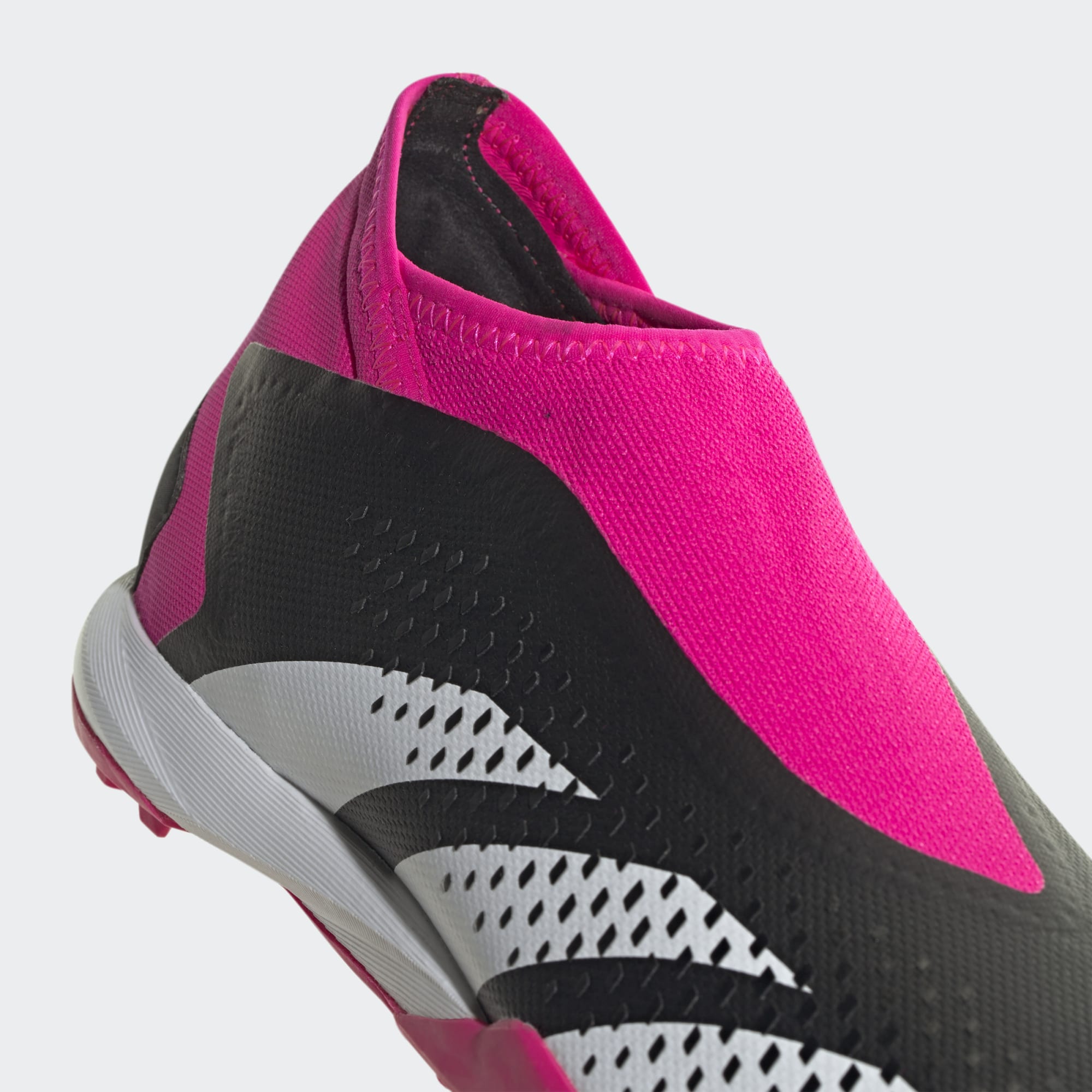 Achieve accuracy on the field with the adidas Predator Accuracy.3 Laceless Turf Boots in Core Black/Cloud White/Team Shock Pink 2.