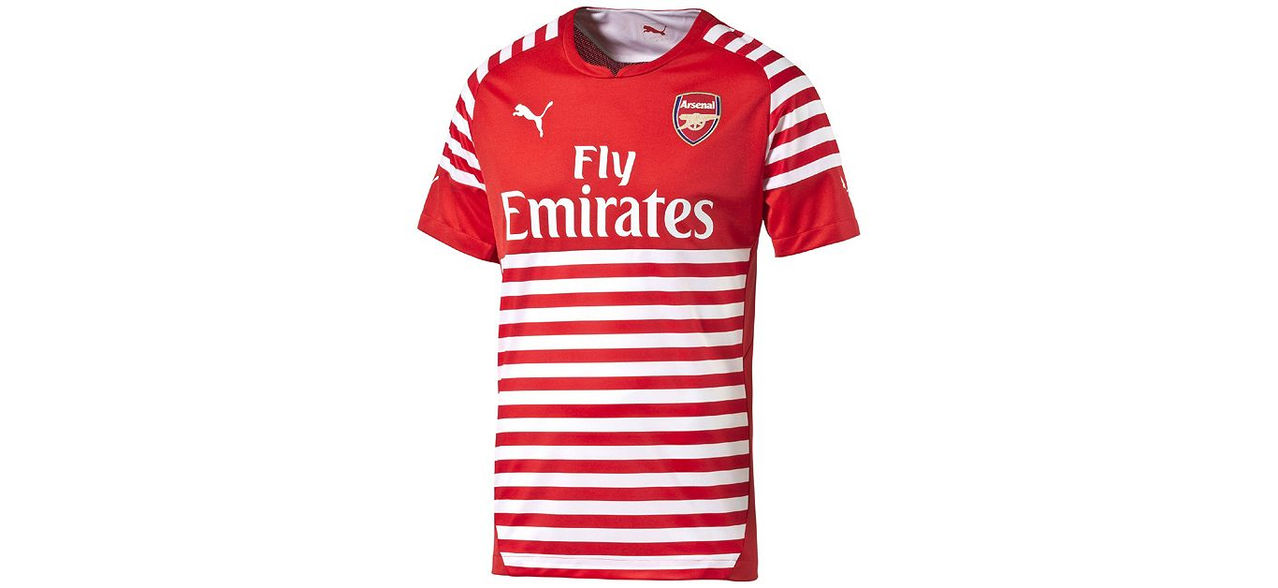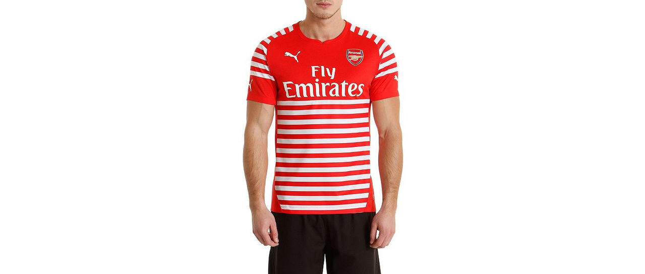 The hooped stripes on this Arsenal Football Club pre-match jersey pay tribute to the legendary tactician Herbert Chapman, AFC’s manager from 1925 - 1934 and one of the modernisers of English football.